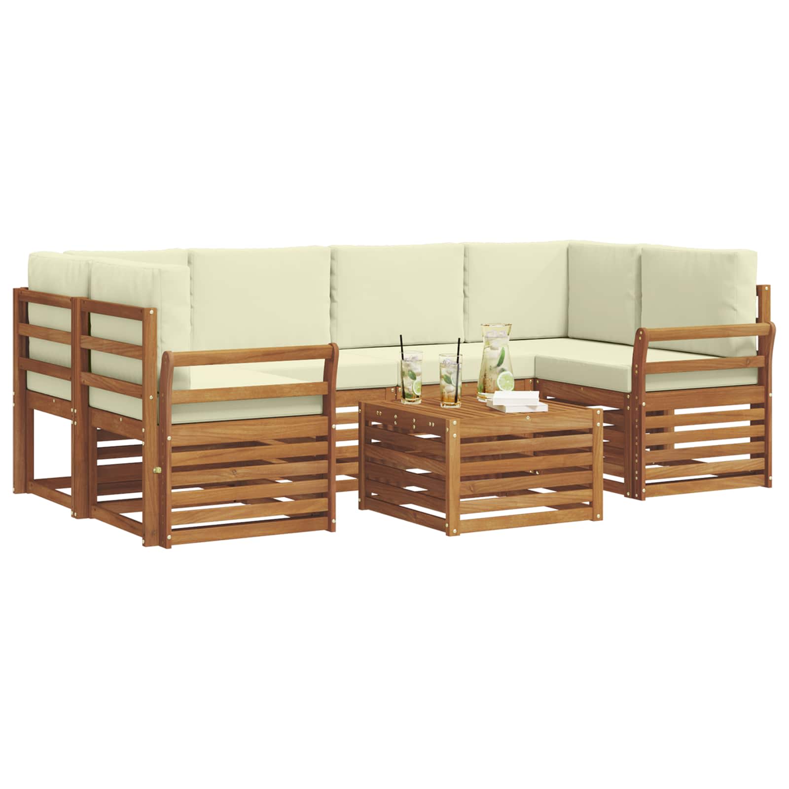 Sedací soupravy 7 pcs Přirozená a Krémová Masivní akátové dřevo