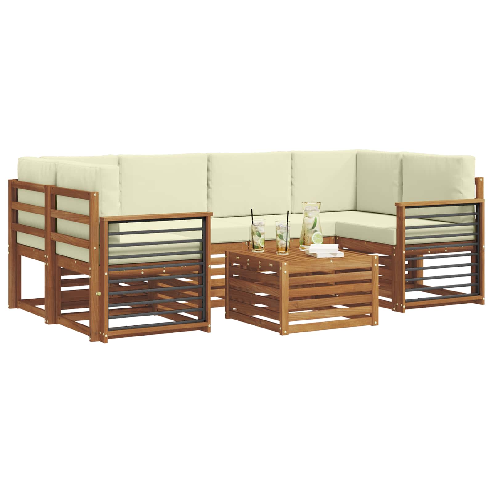 Sedací soupravy 7 pcs Přirozená a Krémová Masivní akátové dřevo