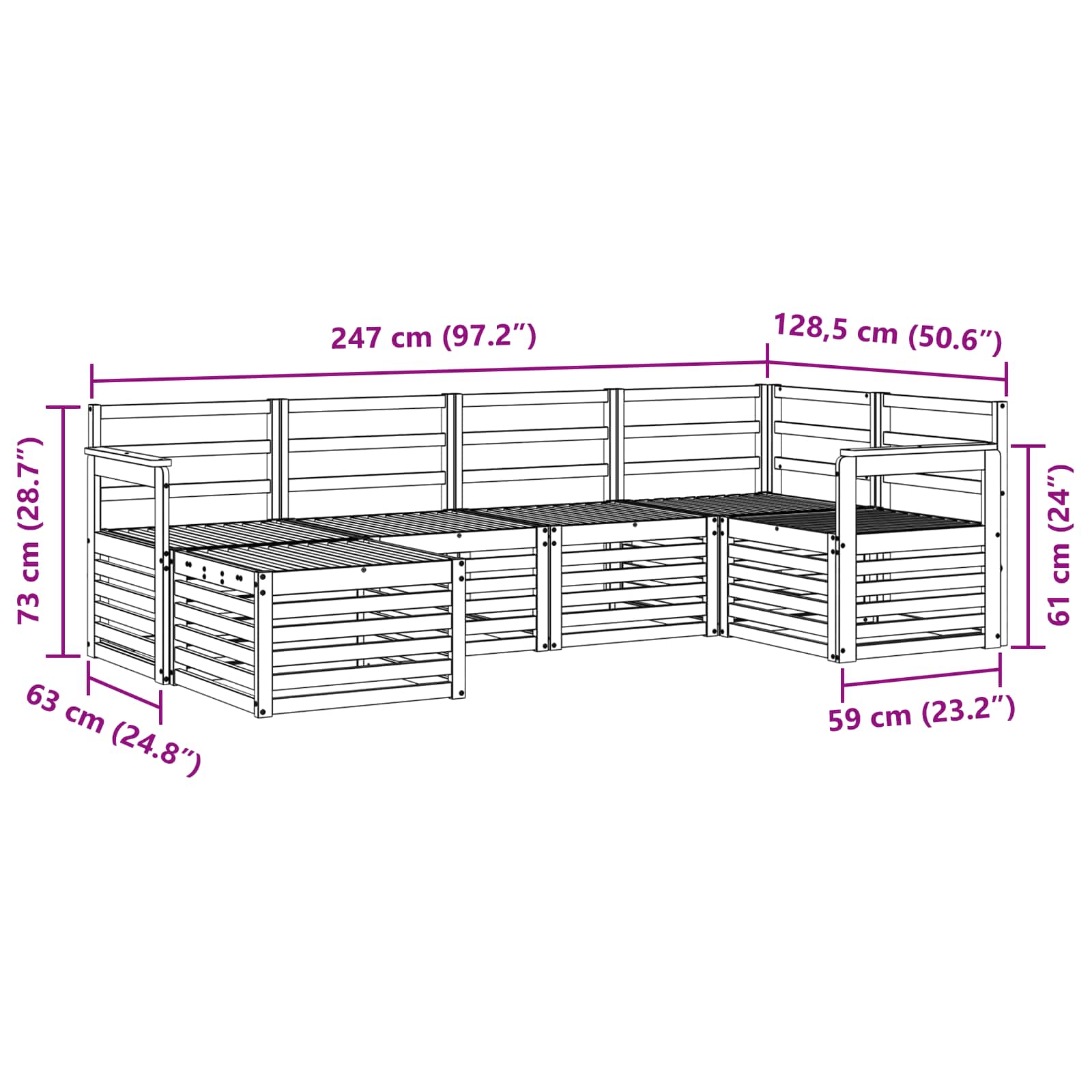 • 1 x Konec pohovka: 59 x 59 x 37 cm (DŠV)