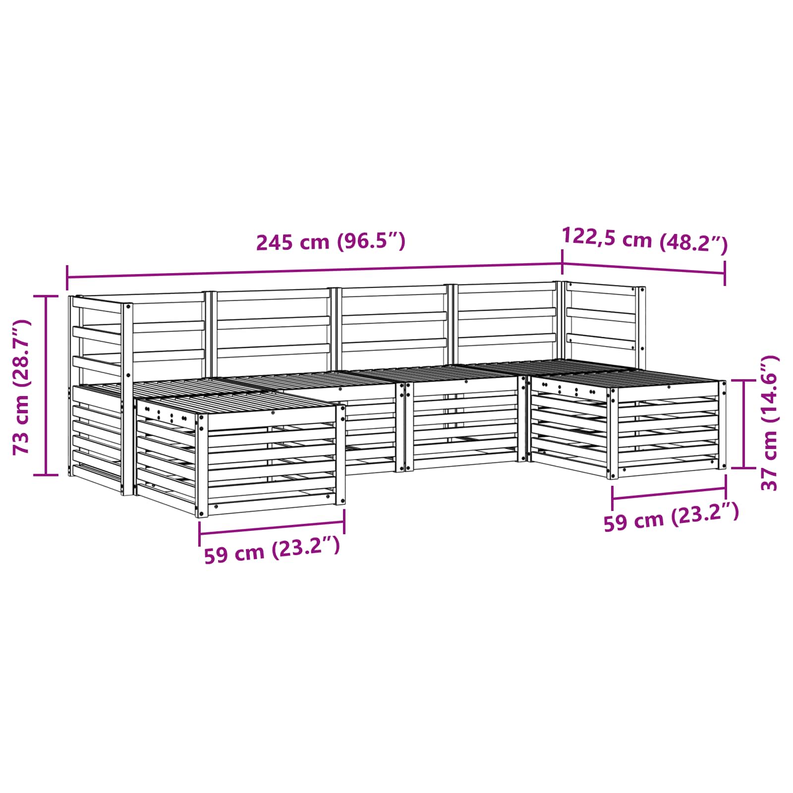 • 4 x prostřední pohovka: 63 x 59 x 73 cm (D x Š x V)