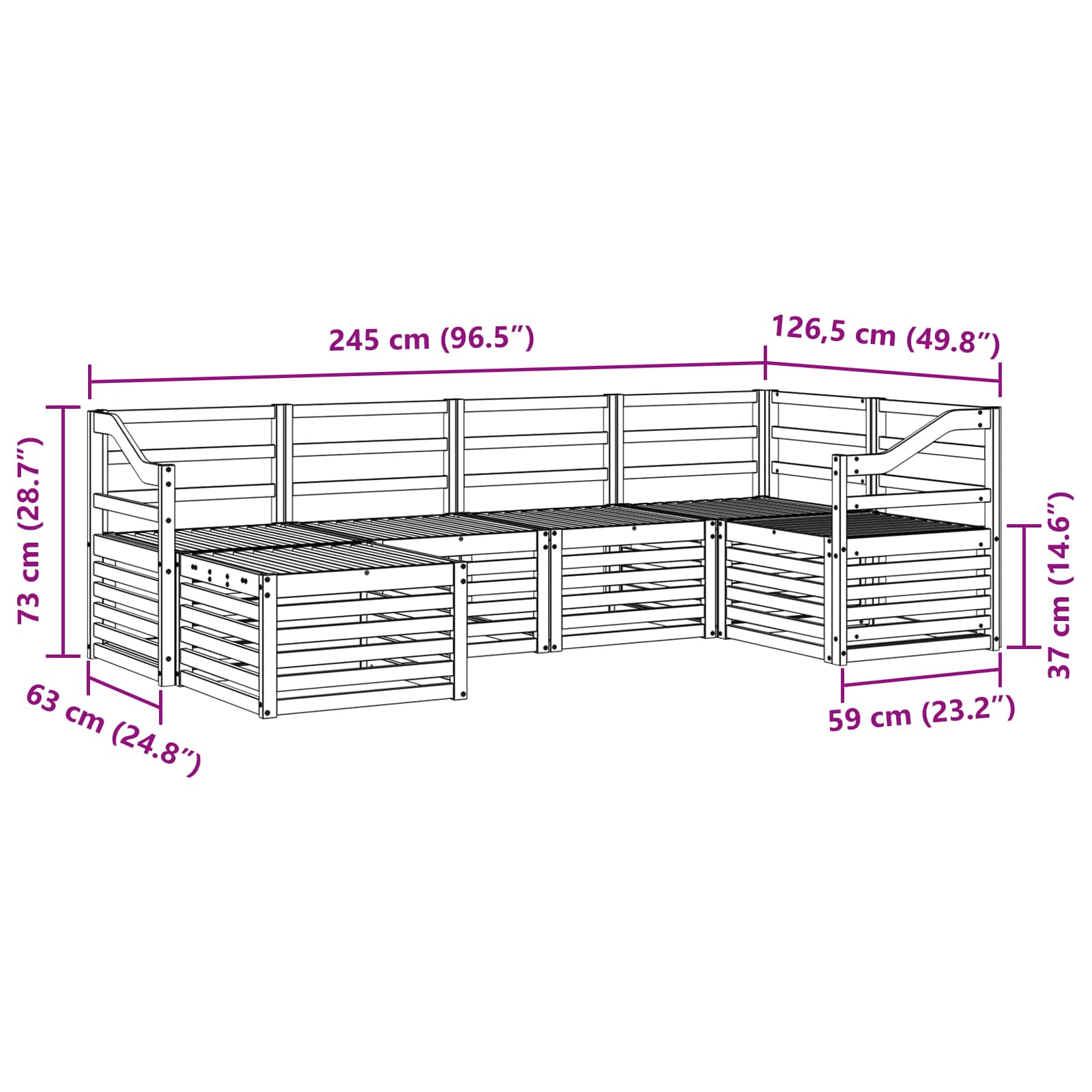 • Celkové rozměry: 245 x 126,5 x 73 cm (D x Š x V)