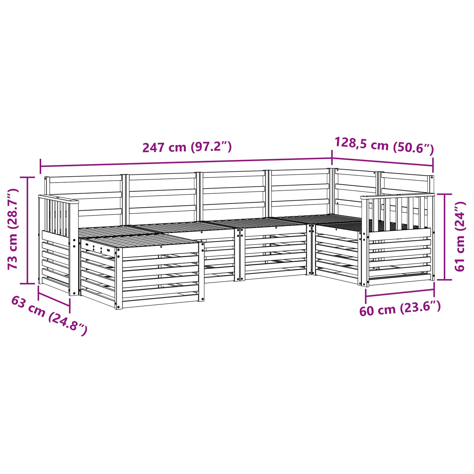 • Celkové rozměry: 247 x 128,5 x 73 cm (D x Š x V)