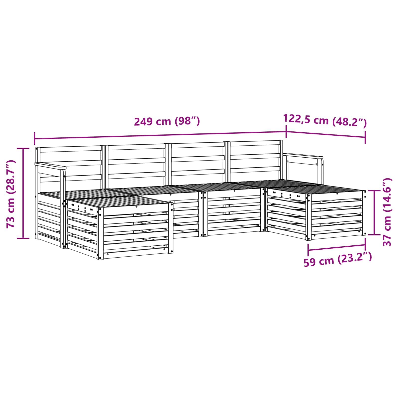 • 4 x prostřední pohovka: 63 x 59 x 73 cm (D x Š x V)