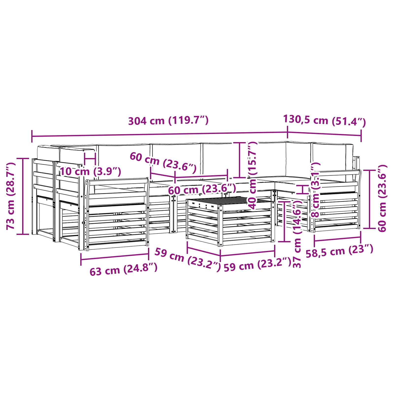 Sedací soupravy 8 pcs Přirozená a Krémová Masivní akátové dřevo