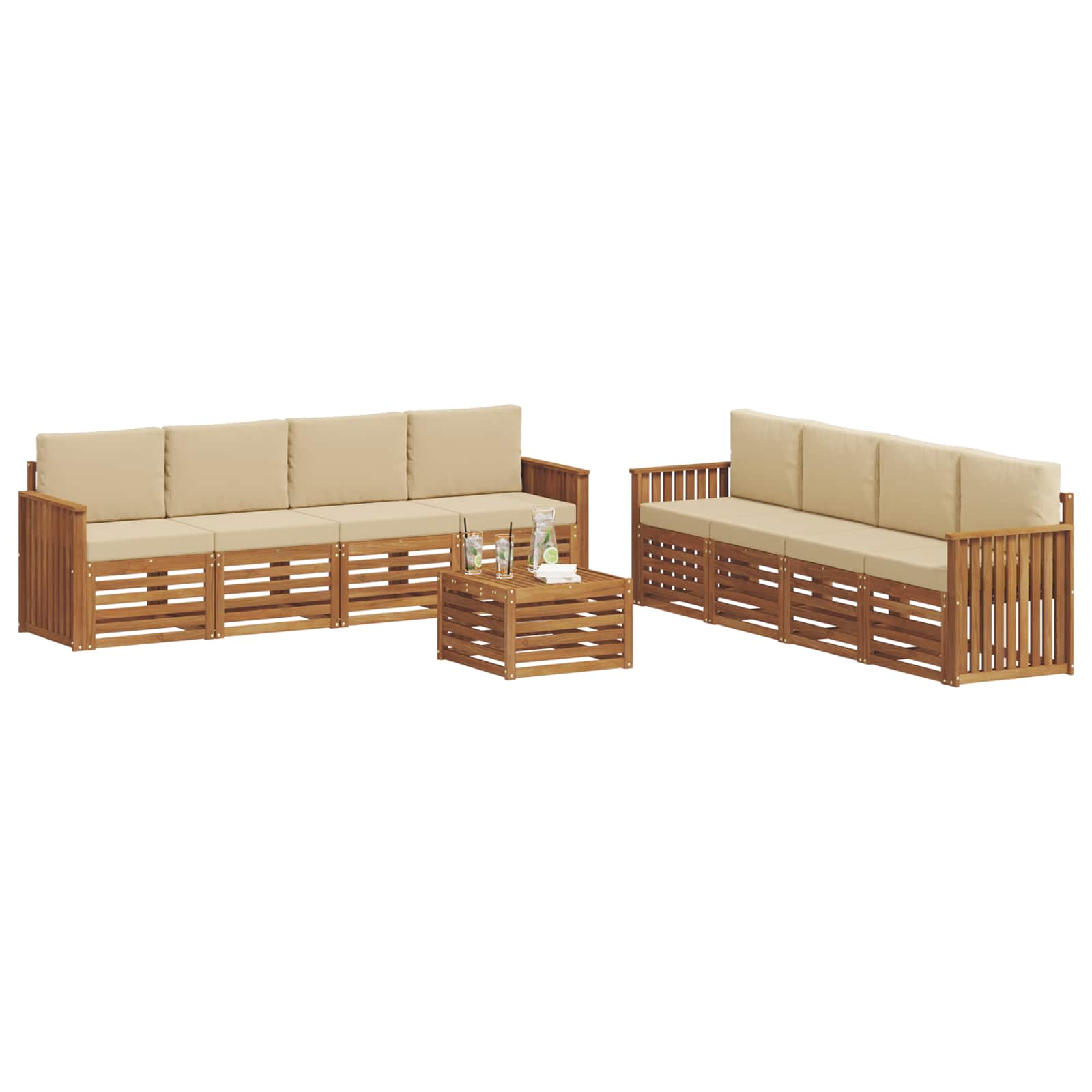 Sedací soupravy 9 pcs Přirozená a Béžová Masivní akátové dřevo