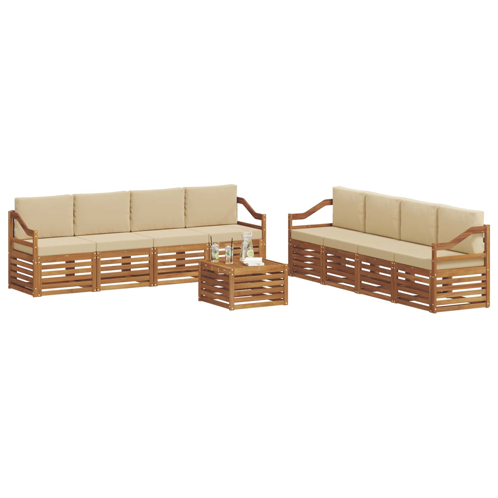 Sedací soupravy 9 pcs Přirozená a Béžová Masivní akátové dřevo