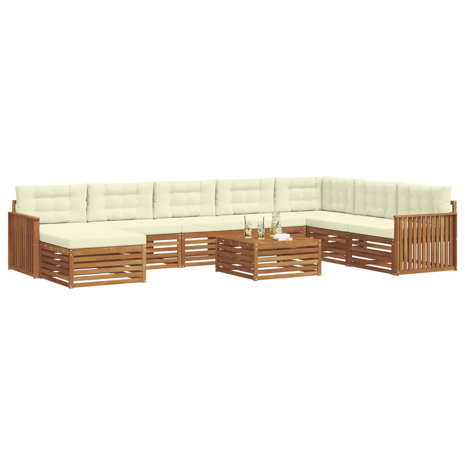 Sedací soupravy 9 pcs Přirozená a Krémová Masivní akátové dřevo