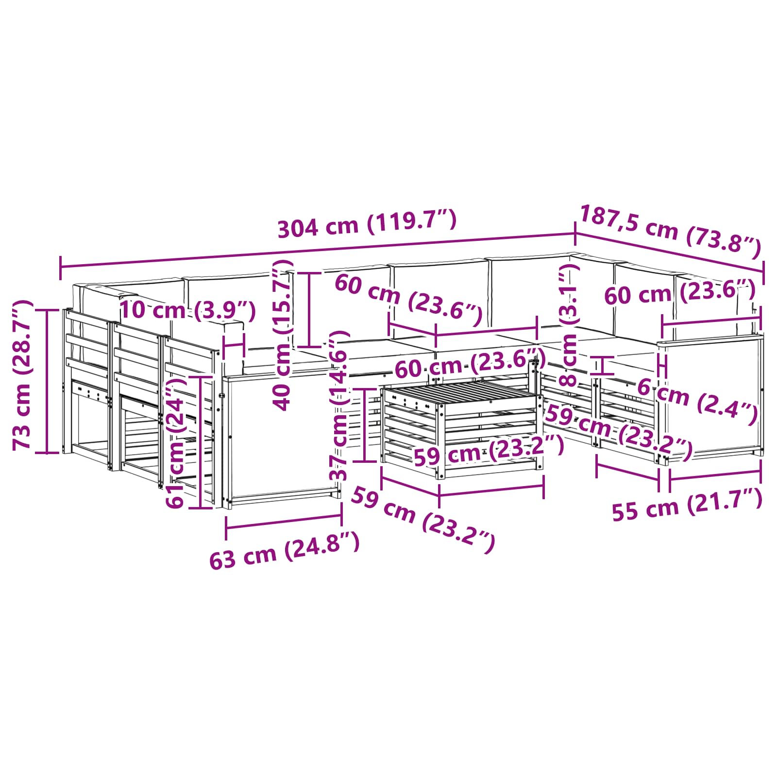 • Pohodlí a všestrannost: Modulární design umožňuje variabilní uspořádání dle různých potřeb a prostor. Ideální pro odpočinek, akce s přáteli nebo pro chvíle osamění s knížkou. Tato sada se snadno přizpůsobí jakémukoli venkovnímu prostředí a maximálně zvyšuje pohodlí.