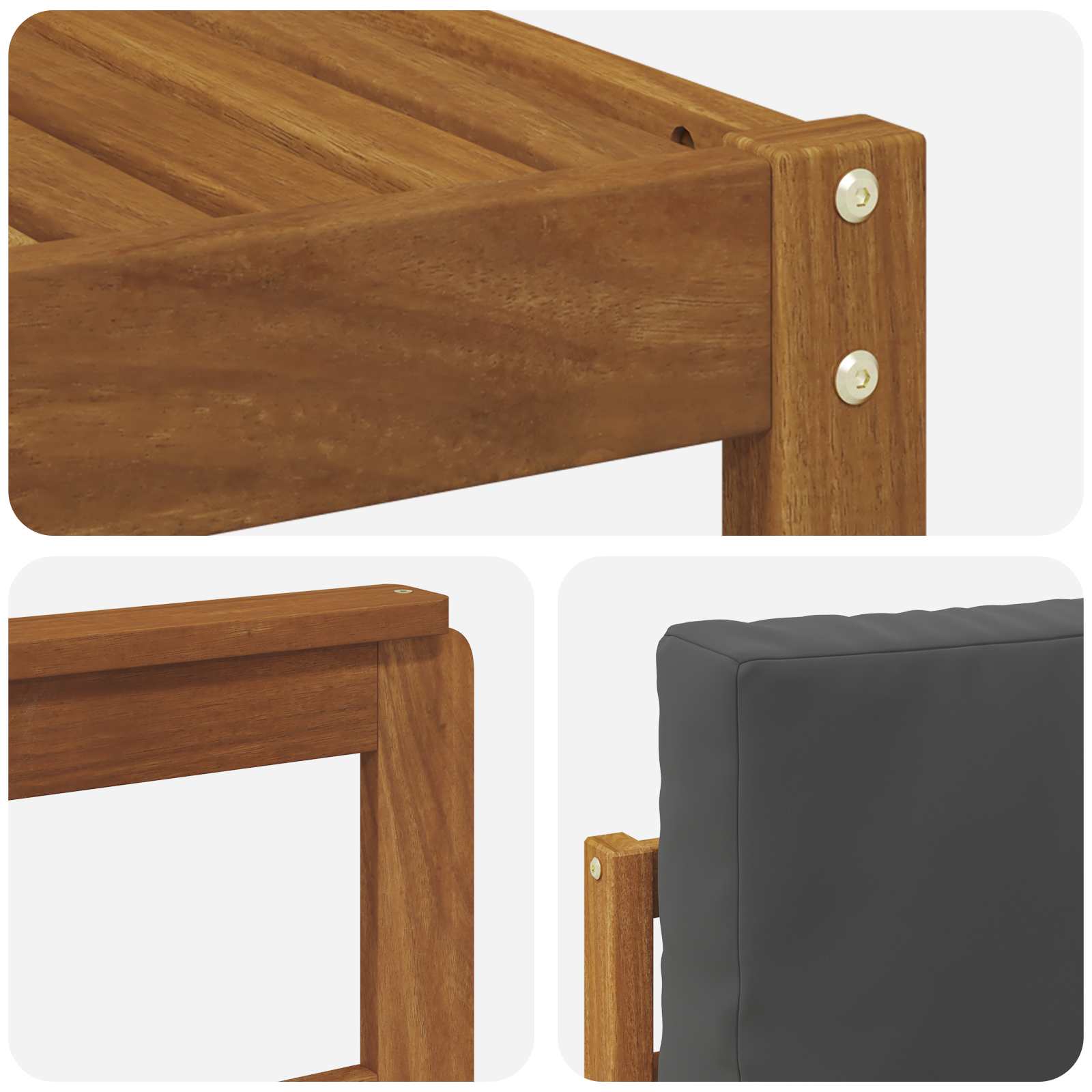• Odolné masivní akáciové dřevo: Tohle venkovní nábytek se vyznačuje svou odolností a trvanlivostí. Stabilní konstrukce poskytuje oporu a dlouhou životnost, zatímco přirozený odstín dodává šmrnc každé zahradě nebo terase.
