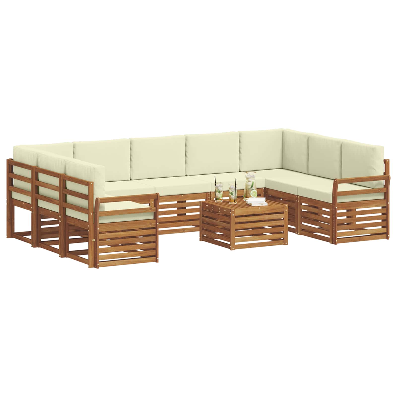 Tahle venkovní sada nábytku spojuje styl s praktickým využitím a stává se tak skvělým středobodem na každé zahradě nebo terase. Moderní design s čistými liniemi a jednoduchými detaily přidává eleganci a podporuje relaxaci venku i společenské akce. Sada je vyrobená z masivního akáciového dřeva, což zaručuje její odolnost a trvalý vzhled - ideální pro ty, co hledají něco praktického, ale i stylového.