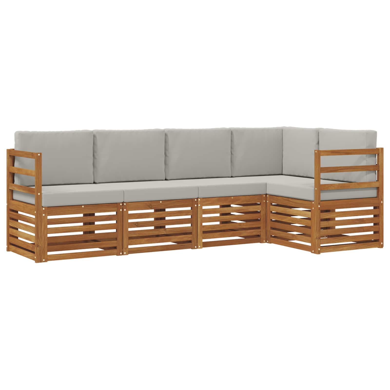 • Odolné masivní akáciové dřevo: Tato venkovní sedací souprava, vyrobená z masivního akáciového dřeva, je známá svou dlouhou životností a odolností vůči venkovním podmínkám. Pevná konstrukce dodává spolehlivou oporu a stabilitu, zatímco přírodní barva dřeva zvýrazňuje zahradní nebo terasové prostředí.