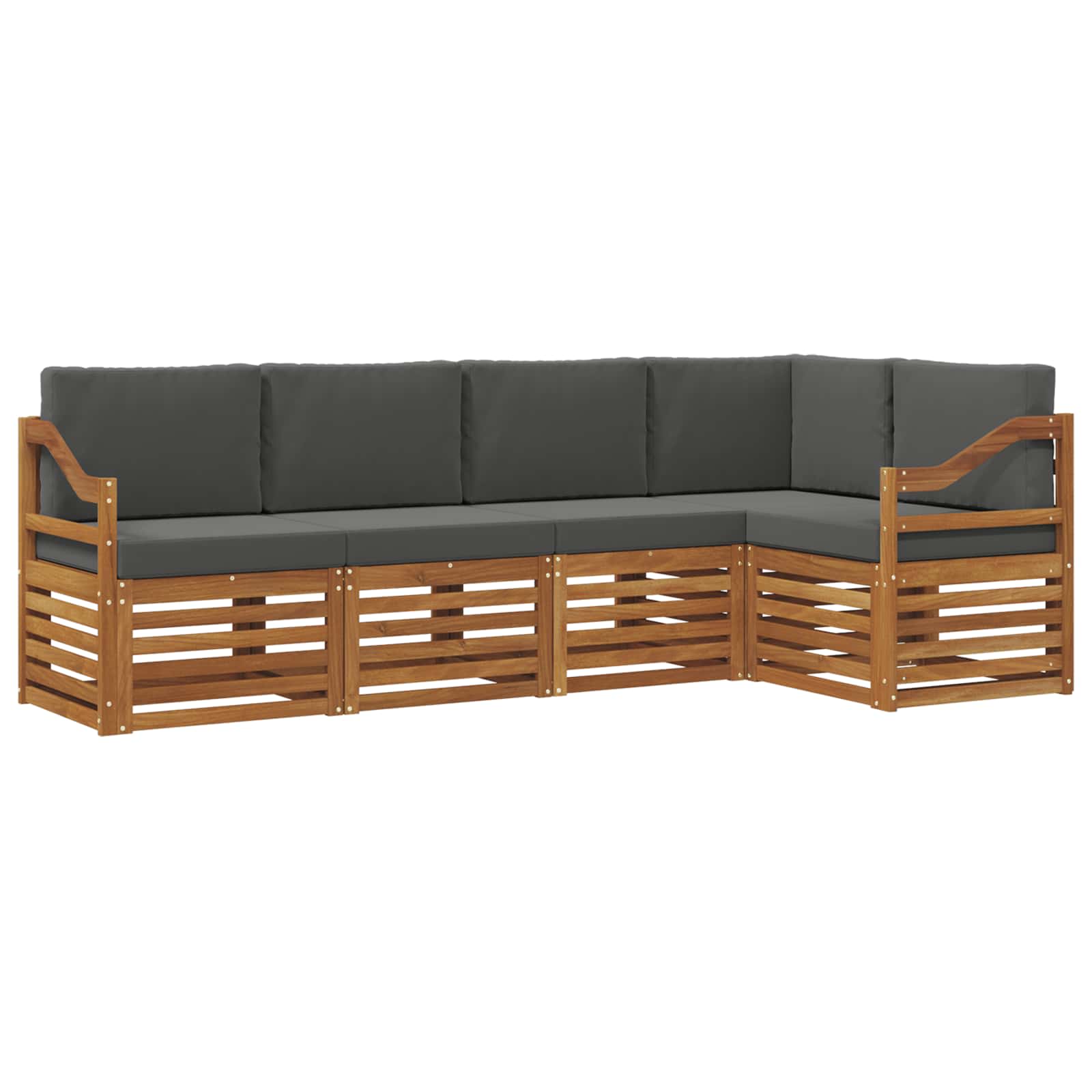 Tato venkovní sedací souprava je fúzí styly a funkcí a je perfektním centrem pro každou zahradu nebo terasu. Moderní design, s čistými liniemi a minimalistickým stylem, přidává eleganci a podporuje odpočinek a společenský život venku. Celá je z masivního akáciového dřeva, takže je fakt odolná a vypadá skvěle, ideální pro ty, co hledají něco praktického a vkusného v zahradním nábytku.