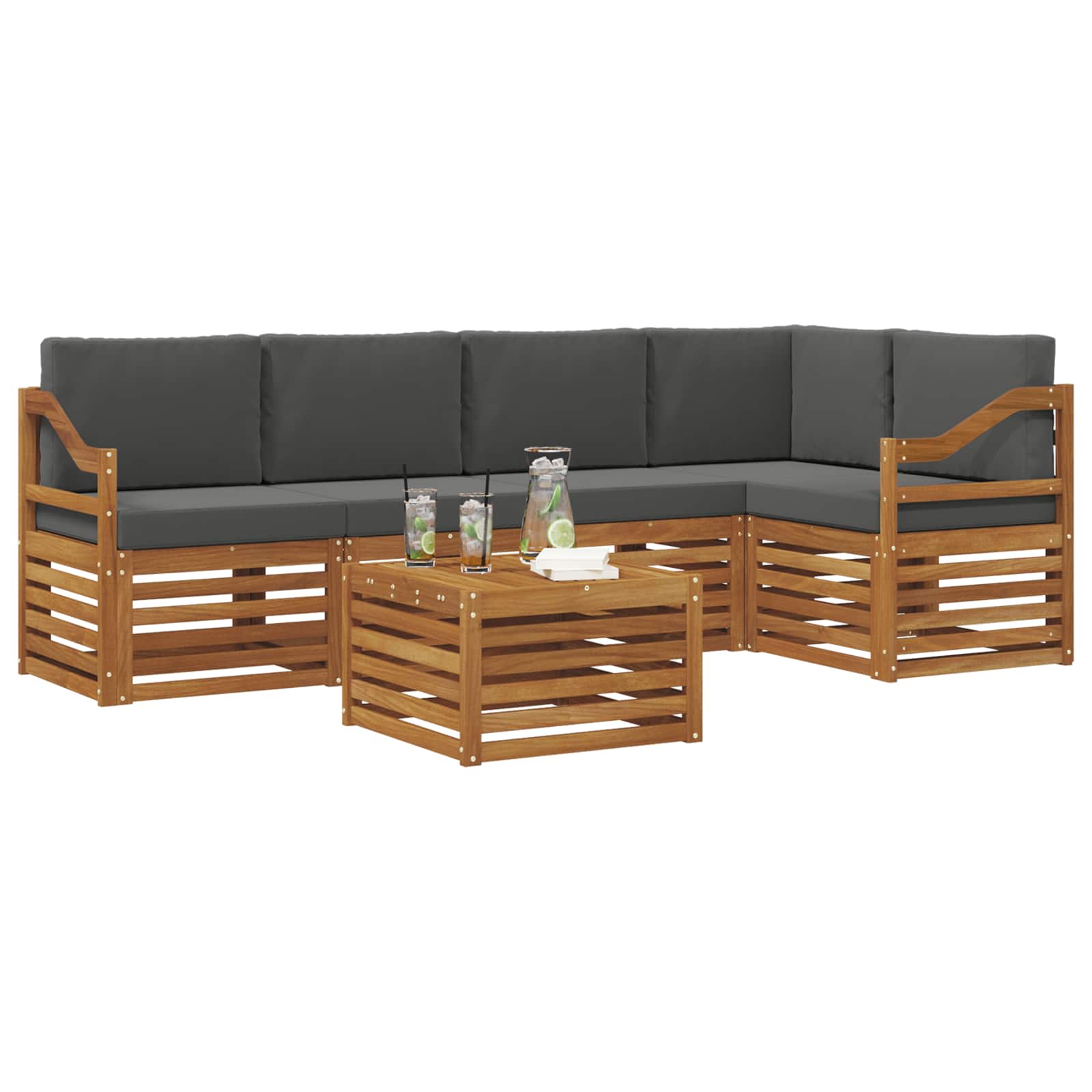 Souprava zahradního nábytku spojuje styl s funkčností a stává se tak úžasným středobodem pro každou zahradu či terasu. Její moderní design s čistými liniemi a přehlednými detaily dodává eleganci a podporuje venkovní odpočinek a setkání s rodinou a přáteli. Vyrobená z masivního akáciového dřeva, je to ideální volba pro ty, kteří hledají jak praktičnost, tak i styl.