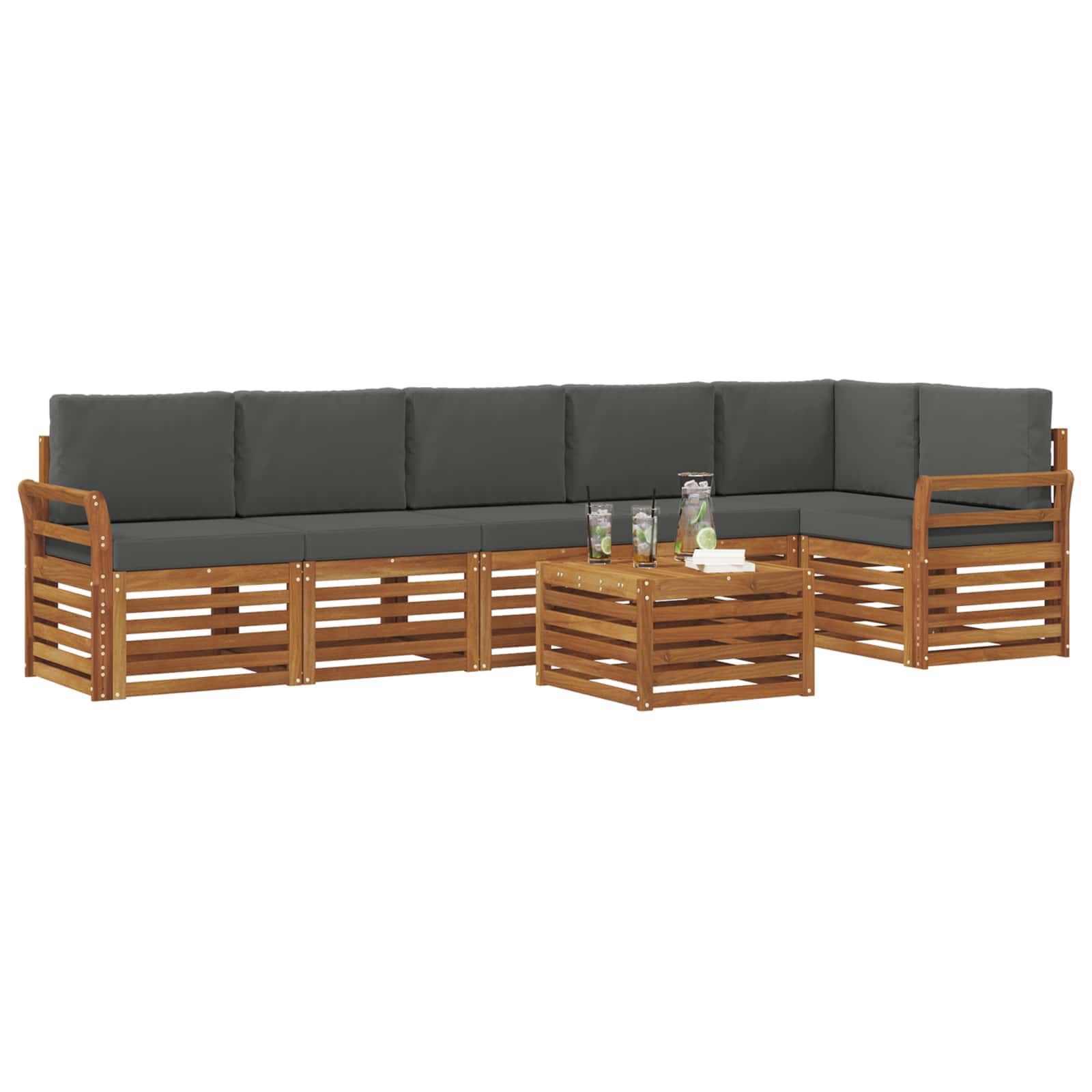 Tato venkovní sektorová pohovka z masivního akáciového dřeva v sobě spojuje styl a odolnost. Je ideální pro zahrady, terasy a kolem bazénu. Moderní a elegantní design, který lze snadno přizpůsobit jakémukoli venkovnímu prostoru a příležitosti, vytvoří příjemnou, uvolněnou atmosféru s hnědými tóny, které se skvěle hodí do přírodního prostředí. Perfektní na pohodové odpolední relaxace i společenské akce.