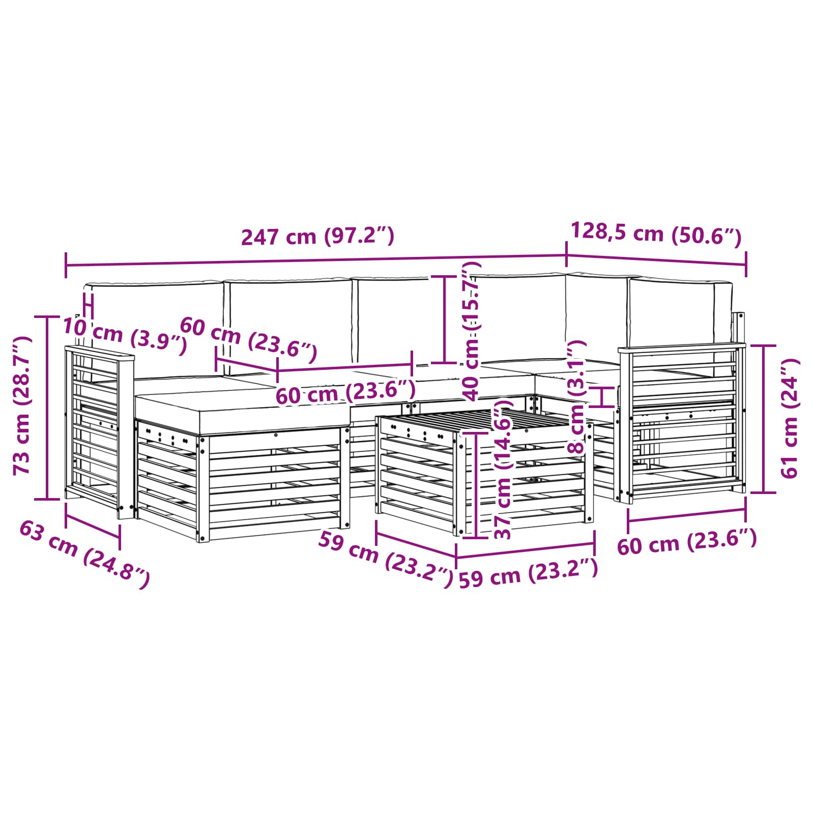 Tento zahradní nábytek spojuje styl a funkčnost, takže se stane šikovným centrem pro vaši zahradu nebo terasu. Jeho moderní design s čistými liniemi dělá dojem a podporuje odpočinek i společenská setkání. Vyrobený z masivního akáciového dřeva, set je odolný a dlouho vydrží, ideální volba, pokud hledáte praktičnost i šik vzhled venkovního nábytku.