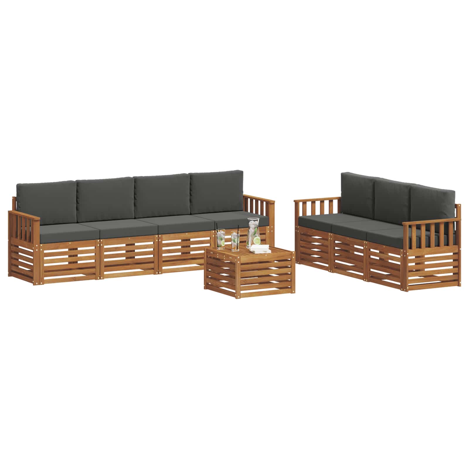 Zahradní nábytek splňuje styl a funkčnost, čímž vytvoří skvělý středobod pro jakoukoli zahradu nebo terasu. Moderní design s čistými liniemi přidává eleganci a podporuje venkovní relaxaci a společenské akce. Vyrobeno z masivního akáciového dřeva, nabízí trvanlivost a dlouhotrvající vizuální přitažlivost, ideální volba pro praktické a atraktivní venkovní nábytek.
