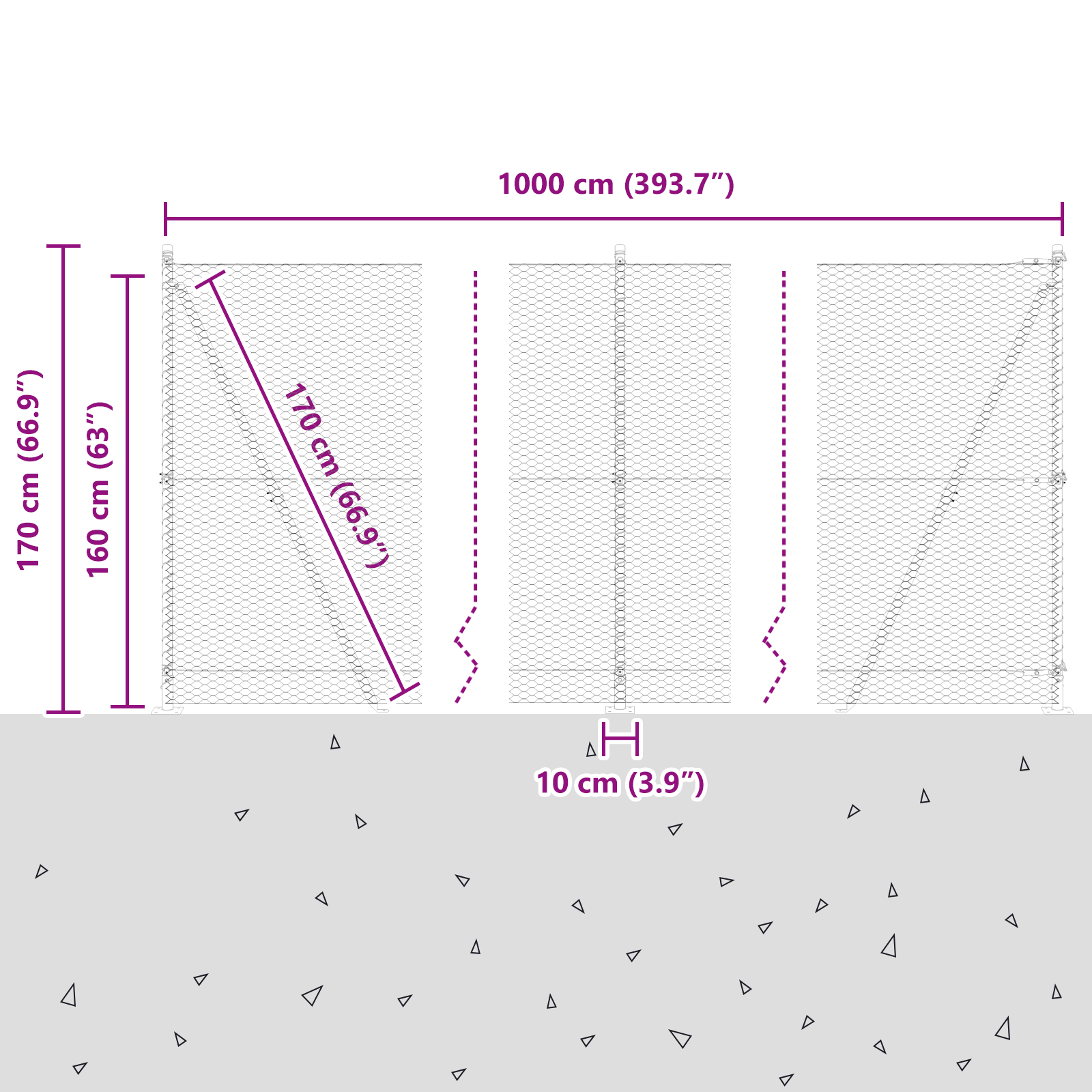 Plotový sloupek. Šedá 10 x 1,6 m (25 mm síť) Ocel a PVC