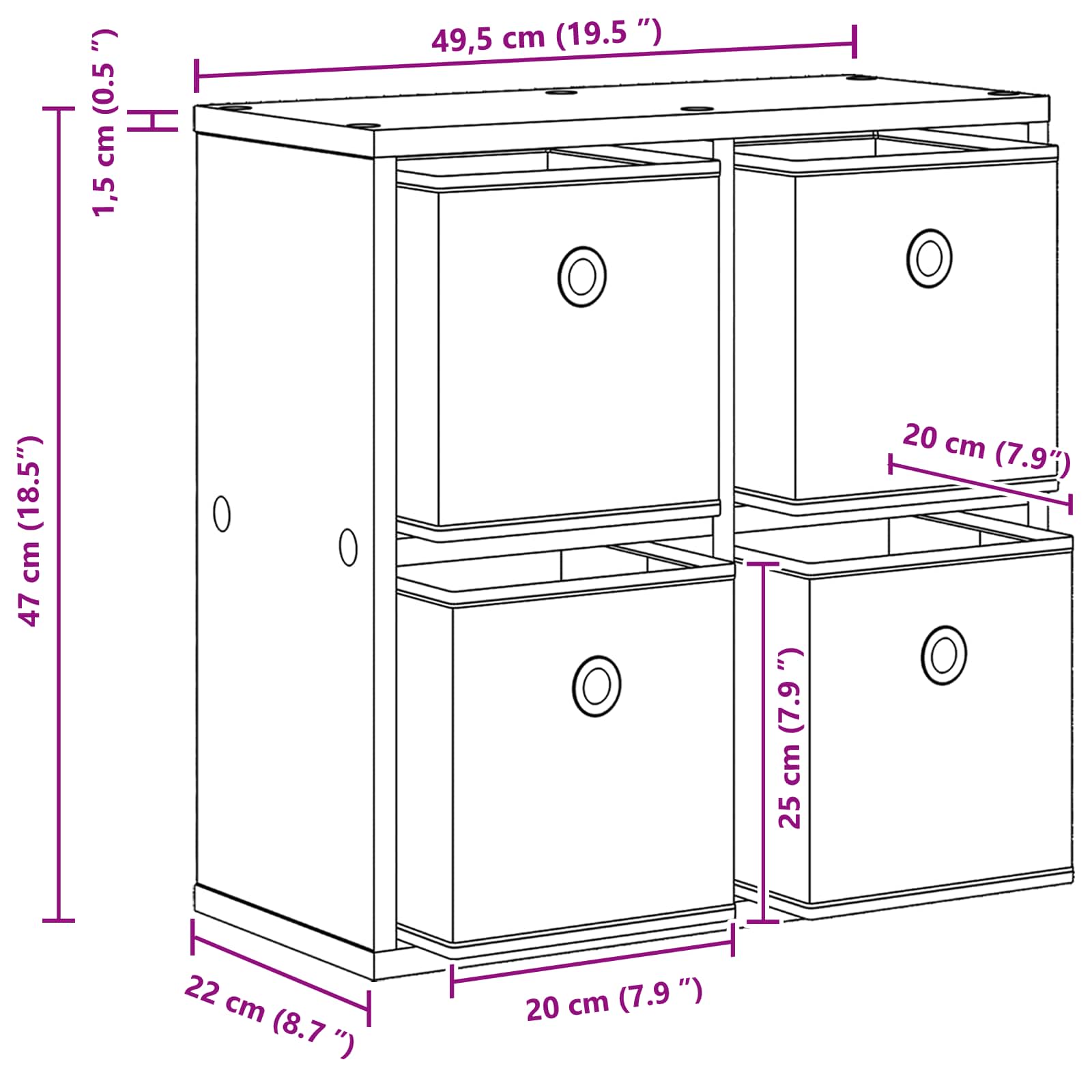 • Celkové rozměry: 49,5 x 22 x 47 cm (Š x H x V)