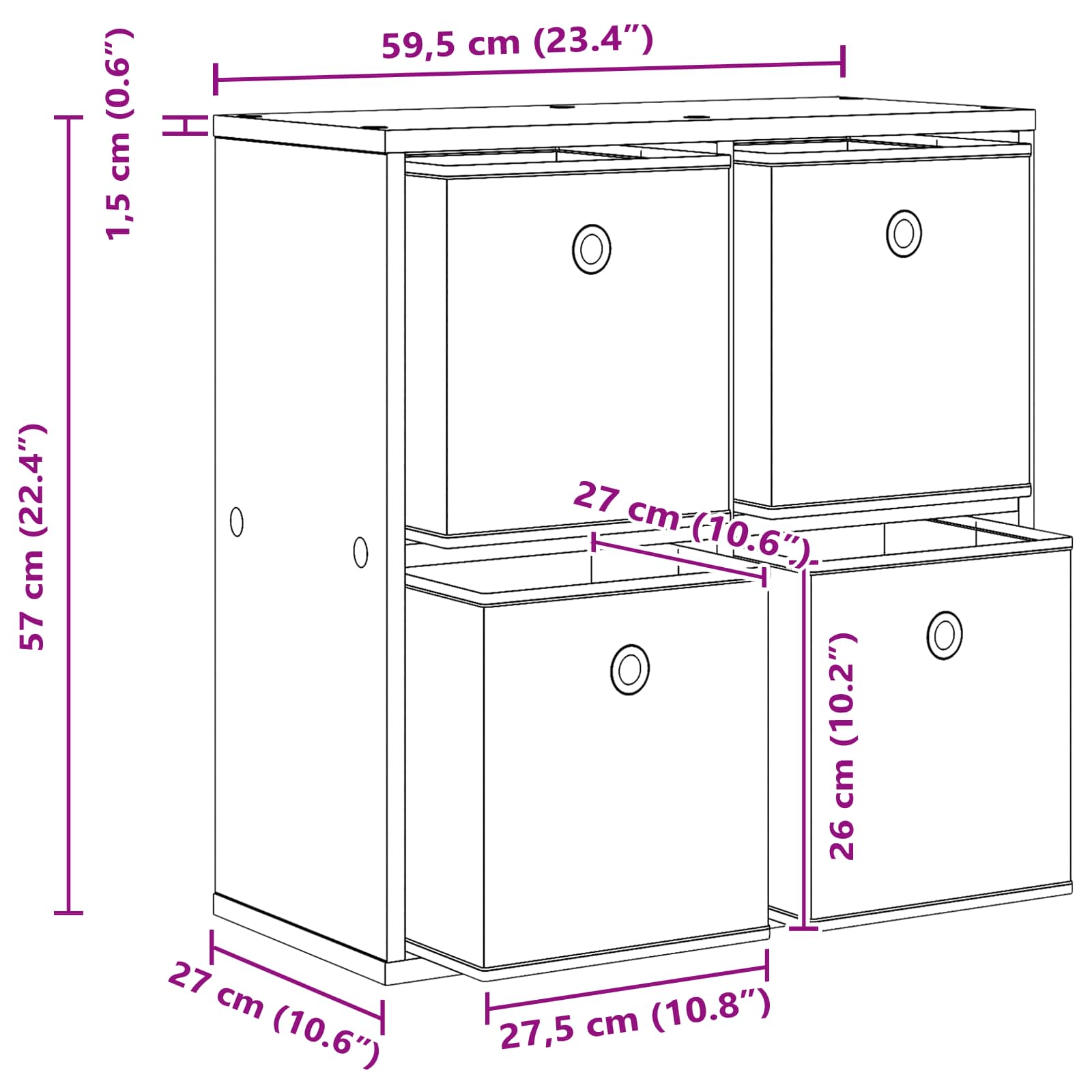 • Celkové rozměry: 59,5 x 27 x 57 cm (Š x H x V)