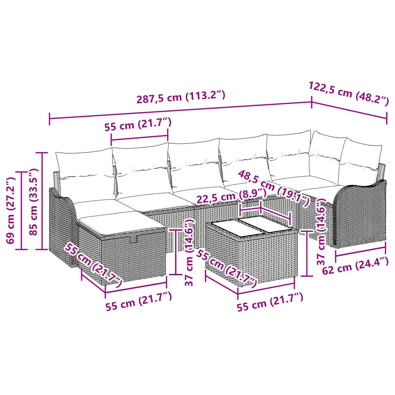 Proměň svou zahradu nebo terasu na moderní venkovní prostor s tímto hezkým zahradním pohovkovým setem. Navržený pro venkovní dobrodružství, tento set spojuje minimalismus s funkčností, ideální pro lenošení, zábavu nebo odpočinek. Jeho jednoduché linie a moderní poly ratan mu dodávají příjemnou atmosféru. Představ si, jak si užíváš hezké počasí v měkkých sedadlech a s pohodlnými opěrkami, což z něj dělá nezbytný doplněk pro jakýkoli venkovní prostor.