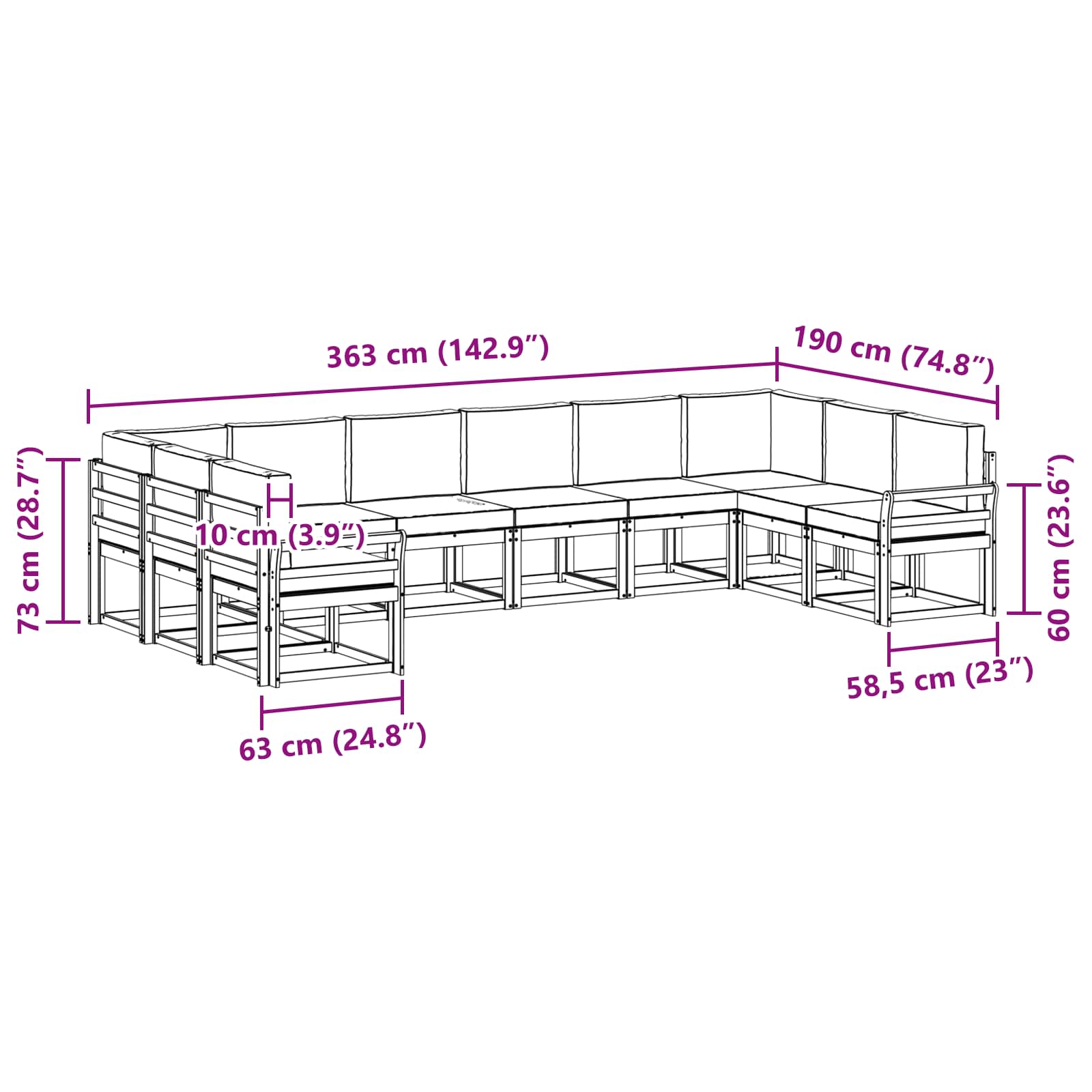 • 10 x Sedací polštář: 60 x 60 x 8 cm (D x Š x V)
