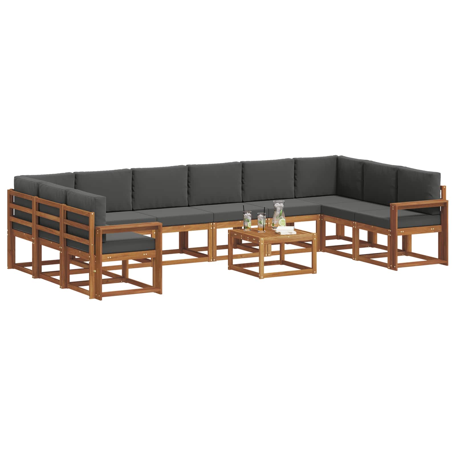 Tato venkovní modulární sedací souprava vypadá skvěle v moderním prostředí a poskytuje jak funkčnost, tak příjemný vzhled pro různé venkovní prostory. Vyrobena z masivního akáciového dřeva, její design se nese v duchu jednoduchosti, což z ní dělá ideální volbu pro zahrady, patio a místa u bazénu. Tento modulární set se dá flexibilně uspořádat podle potřeby a jeho přírodní hnědé odstíny dodávají příjemnou atmosféru pro setkání a relaxaci.