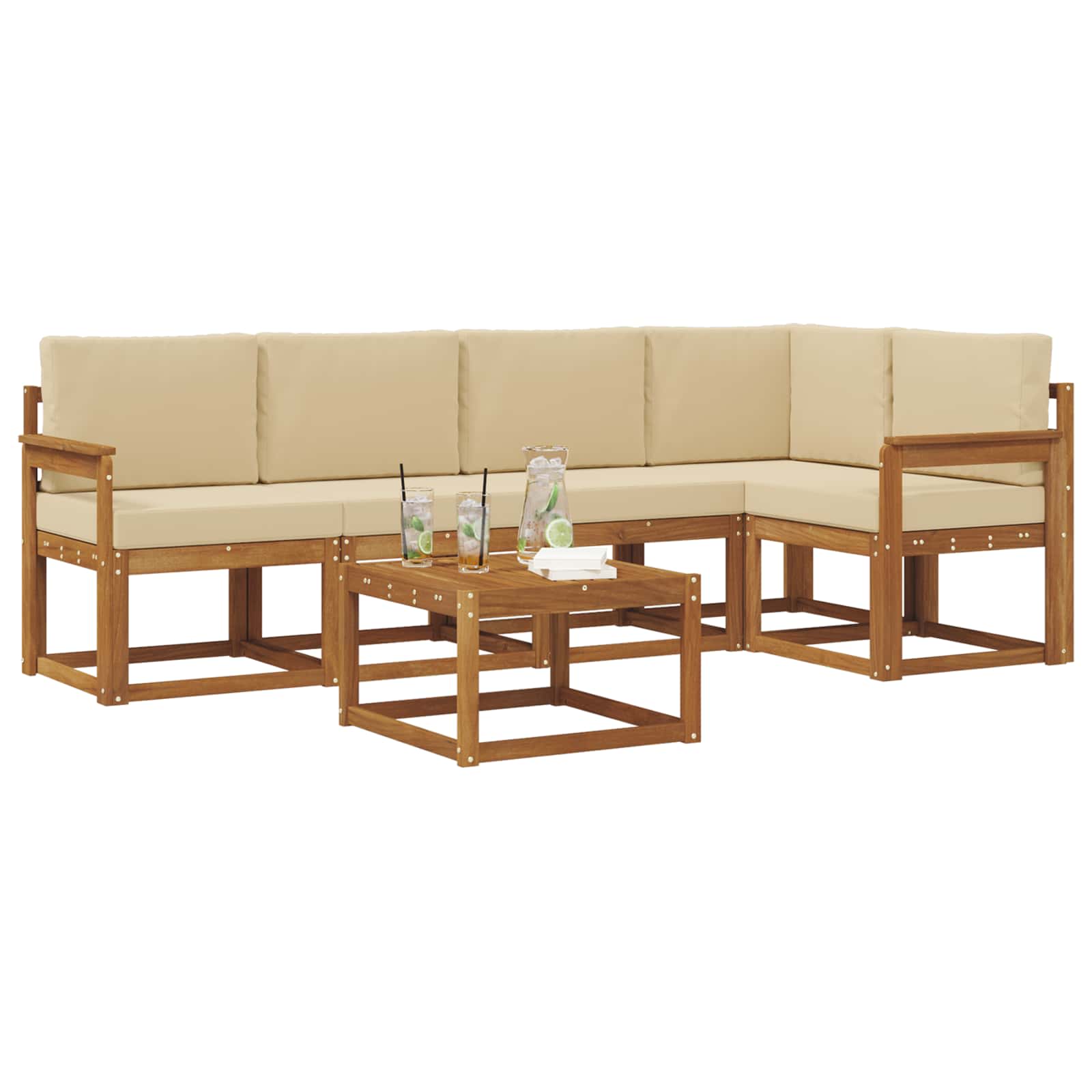 Souprava venkovního nábytku spojuje styl a funkčnost a stává se tak skvělým centrem pozornosti v každé zahradě nebo na terase. Její moderní design s čistými liniemi a minimálními detaily přináší eleganci a podporuje venkovní relaxaci a společenské akce. Vyrobená z masivního akáciového dřeva, je odolná a dlouhodobě atraktivní, ideální pro ty, kteří hledají kombinaci praktičnosti a sofistikovaného venkovního nábytku.