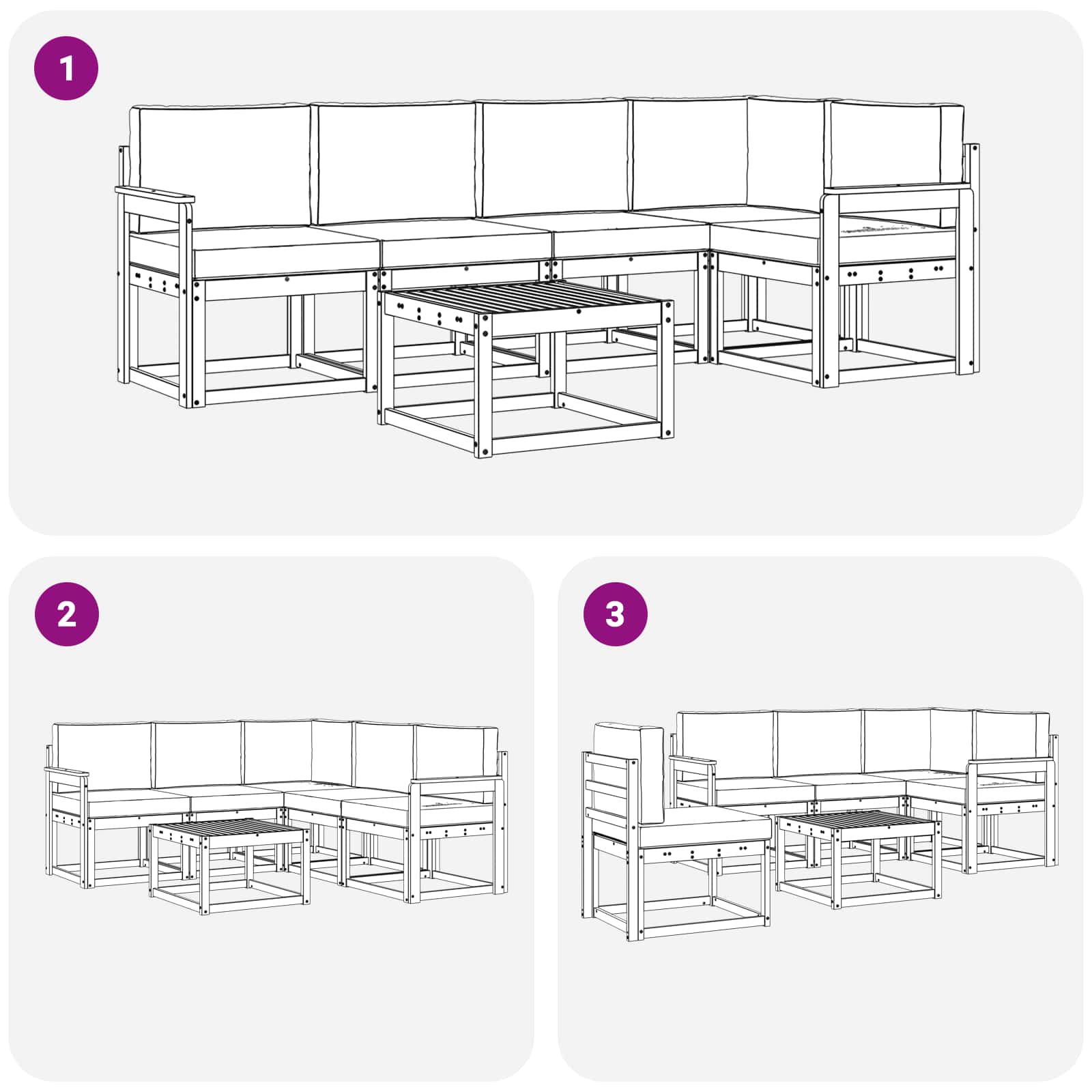 • Pohodlí a variabilita: Modulární design vám umožní flexibilně měnit uspořádání, ideální pro relaxaci, večírky nebo klidné chvíle s knížkou, přizpůsobí se jakémukoli venkovnímu prostředí.
