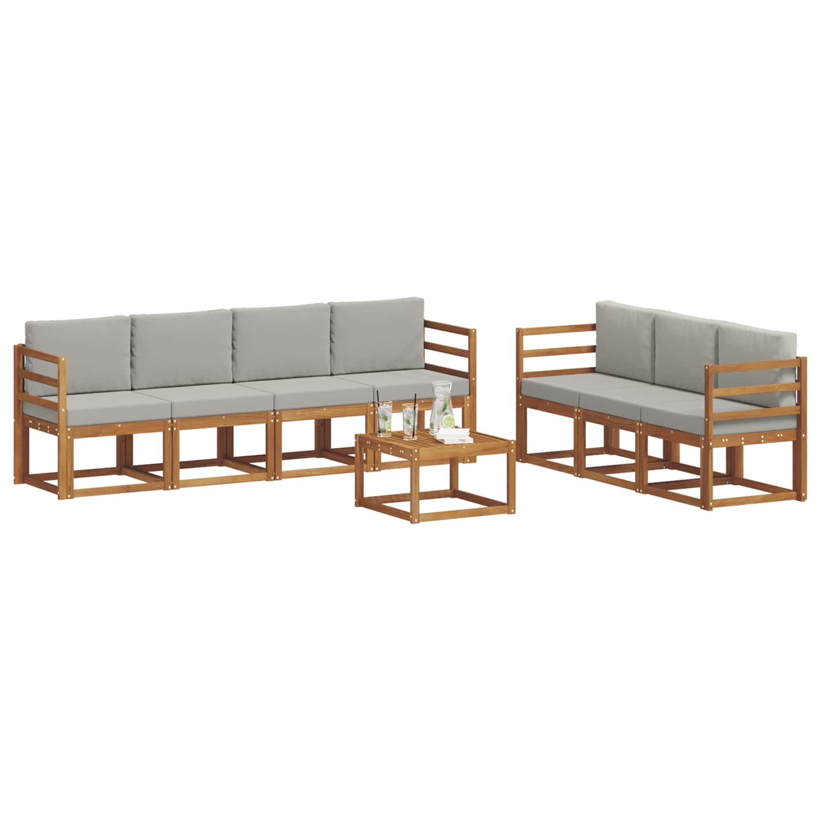 Sada venkovního nábytku spojuje styl s praktičností, takže se stává skvělým centrem pro každou zahradu nebo terasu. Moderní design, s jasnými liniemi a minimalistickými detaily, přidává elegance a podporuje odpočinek venku i společenská setkání. Celá souprava je z kvalitního akáciového dřeva, což zaručuje její trvanlivost a vizuální přitažlivost. To ji dělá perfektní volbou pro ty, kdo chtějí jak funkčnost, tak rafinovaný design.