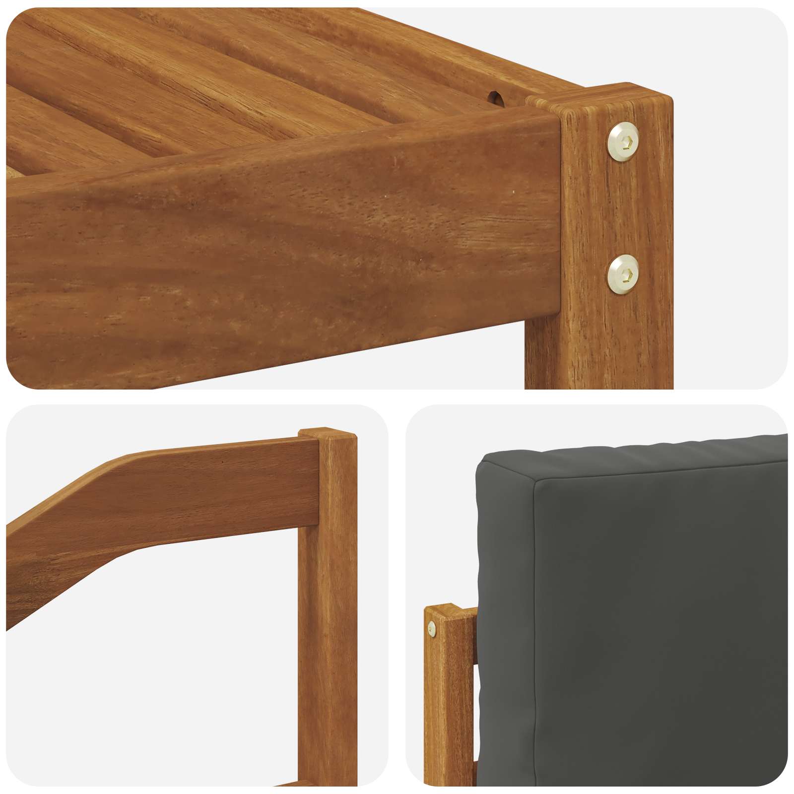 • Masivní akáciové dřevo: Úplně z masivního akáciového dřeva, tahle souprava přináší skvélou odolnost a příjemný vzhled. Akácie je silná a odolná, ideální pro venkovní podmínky a zaručuje vám dlouhodobou investici s nízkou údržbou.