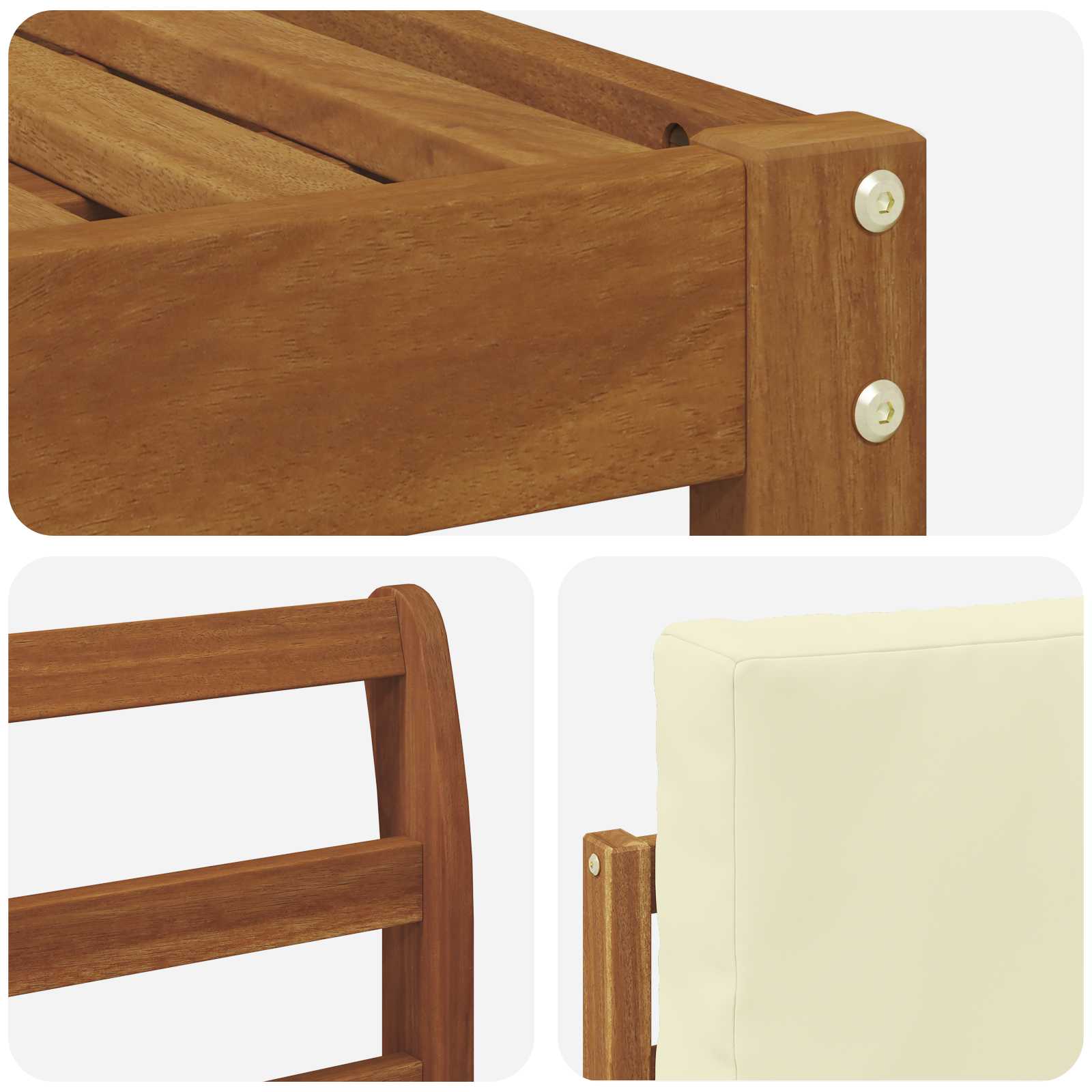 • Odolné masivní akáciové dřevo: Díky použitému akáciovému dřevu je tento venkovní nábytek odolný proti špatnému počasí. Silná konstrukce poskytuje stabilní oporu, zatímco přirozený teplý tón dodává šarm vaší zahradě nebo terase.