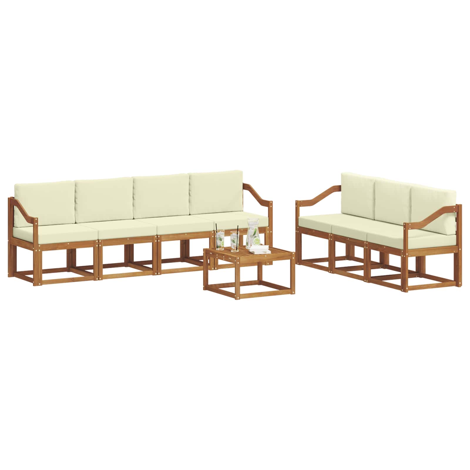 Sada venkovního nábytku spojuje styl s praktičností, takže se stává skvělým centrem pro každou zahradu nebo terasu. Moderní design, s jasnými liniemi a minimalistickými detaily, přidává elegance a podporuje odpočinek venku i společenská setkání. Celá souprava je z kvalitního akáciového dřeva, což zaručuje její trvanlivost a vizuální přitažlivost. To ji dělá perfektní volbou pro ty, kdo chtějí jak funkčnost, tak rafinovaný design.