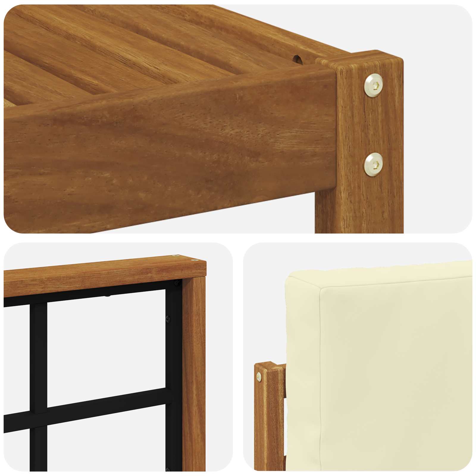 • Masivní akáciové dřevo: Tento pohovkový set je vyroben z kvalitního akáciového dřeva, které je super odolné pro venkovní použití. Odolává plísním a hmyzu, takže je to skvělá volba pro každý prostor. Dlouho ti vydrží, i když se počasí mění.