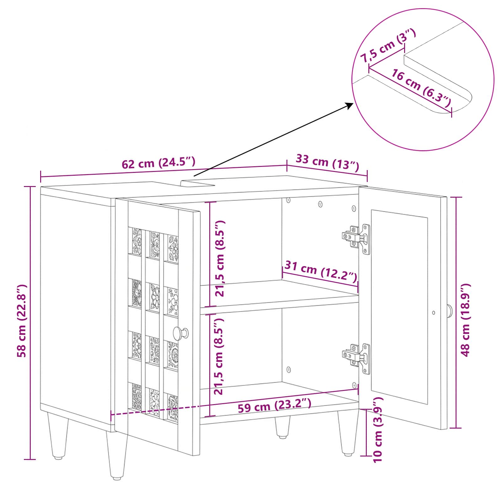 Toto je kvalitní koupelnová skříňka pod umyvadlo, která zkrášlí a zefektivní moderní domov. Hodí se do různých koupelen a její design spojuje jednoduchost, moderní styl a praktičnost. Osloví vás masivní mangové dřevo a kov, které vytváří příjemnou atmosféru a vylepšuje každý koupelnový dekor. Představte si místnost bez chaosu, kde je vše na dosah ruky, a přitom s nádechem sofistikovanosti.