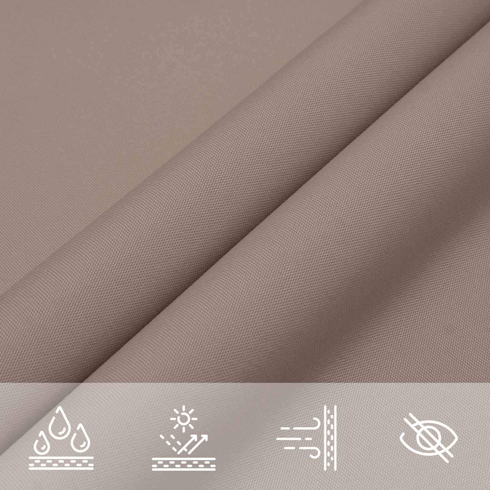 Tato sluneční plachta je z polyesterového oxfordu, což dává funkční zastínění venku. Je navržená tak, aby odolávala UV záření a vodě, takže je skvělá na terasy, zahrady nebo k bazénům. Konstrukce je zpevněna a rohy mají nerezové D-kroužky pro bezpečné uchycení. Tento lehký materiál se snadno montuje s přiloženými lany a snadno se skládá pro skladování. Je to praktické řešení jak chránit před sluncem a větrem na terasách, balkonech, nebo zahradách.