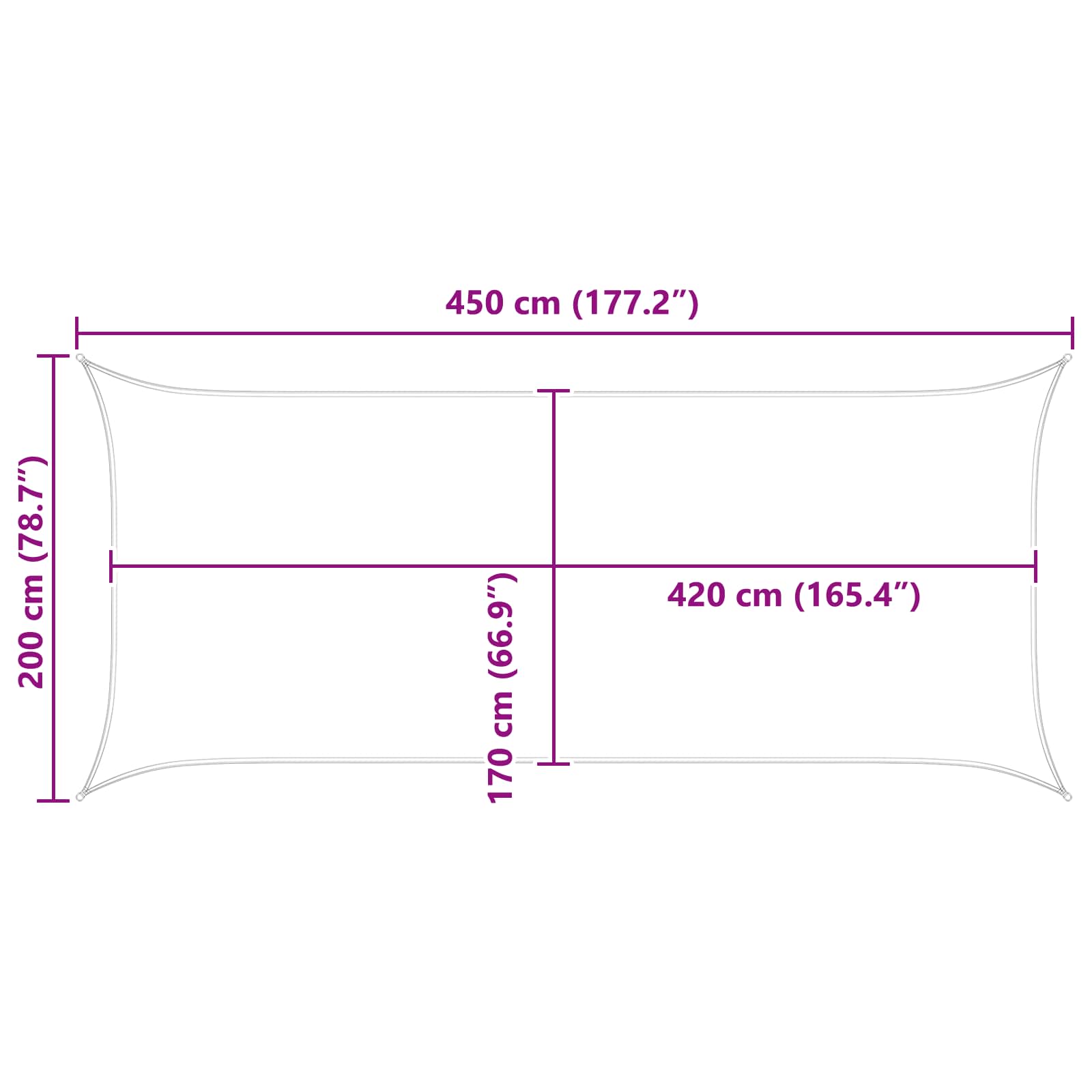Tato sluneční plachta je z polyesterového oxfordu, což dává funkční zastínění venku. Je navržená tak, aby odolávala UV záření a vodě, takže je skvělá na terasy, zahrady nebo k bazénům. Konstrukce je zpevněna a rohy mají nerezové D-kroužky pro bezpečné uchycení. Tento lehký materiál se snadno montuje s přiloženými lany a snadno se skládá pro skladování. Je to praktické řešení jak chránit před sluncem a větrem na terasách, balkonech, nebo zahradách.