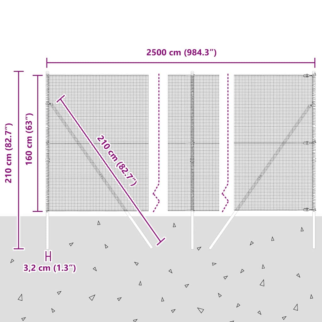 Plotový sloupek. Šedá 25 x 1,6 m (16 x 16 mm síť) Ocel a PVC