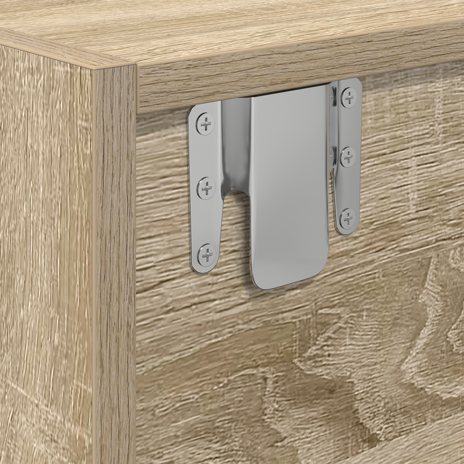 • Stavba z inženýrského dřeva Tato skříňka má pevnou konstrukci z inženýrského dřeva, které je odolné a vypadá stylově. Její robustní stav zajišťuje dlouhou životnost, takže je to spolehlivé úložné řešení. Inženýrské dřevo dodává eleganci, která se hodí do moderních interiérů.