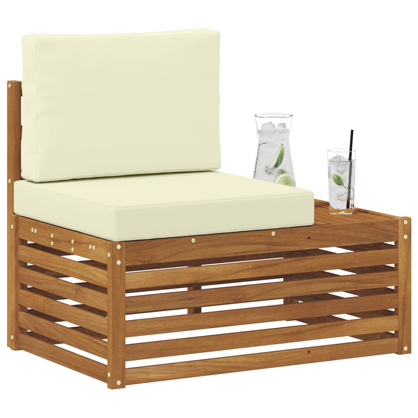 Tento venkovní nábytek se skvěle zapadne do jakéhokoli zahradního prostoru a nabízí moderní nádech, který spojuje jednoduše a funkčně. Je vyrobený z masivního akáciového dřeva s čistými liniemi, což dělá z toho skvělý středobod pro venkovní prostory. Ať už prší nebo svítí slunce, odolný design se přizpůsobí různým venkovním podmínkám a vedle toho zvyšuje celkový vzhled prostoru.
