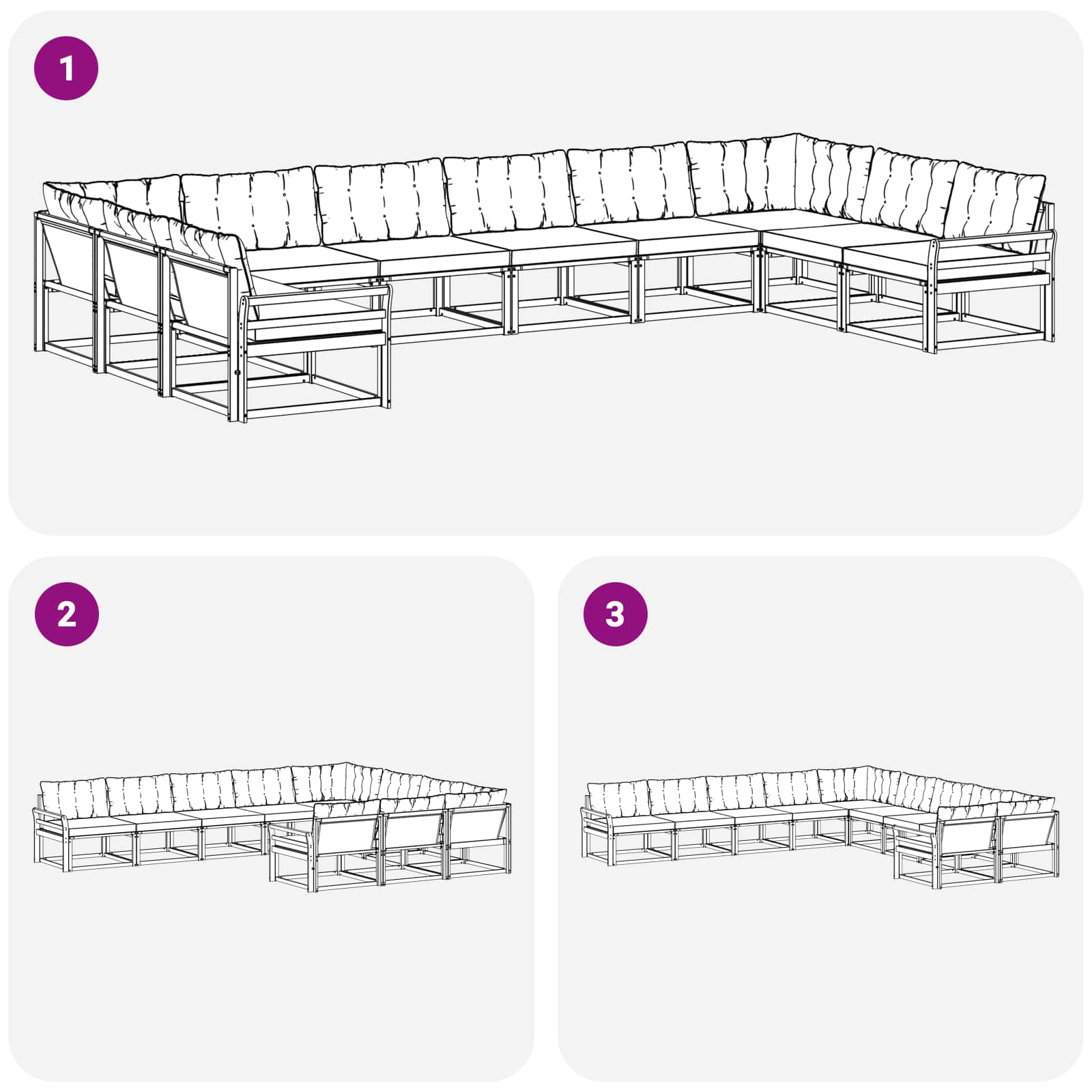 • Součásti: Opěradla a opěrky z masivního akáciového dřeva přinášejí ergonomickou podporu a pohodlí. Modulární uspořádání navíc umožňuje kreativní přizpůsobení a odnímatelné polštáře zaručují měkké sezení s pěnou, kterou si užijete.