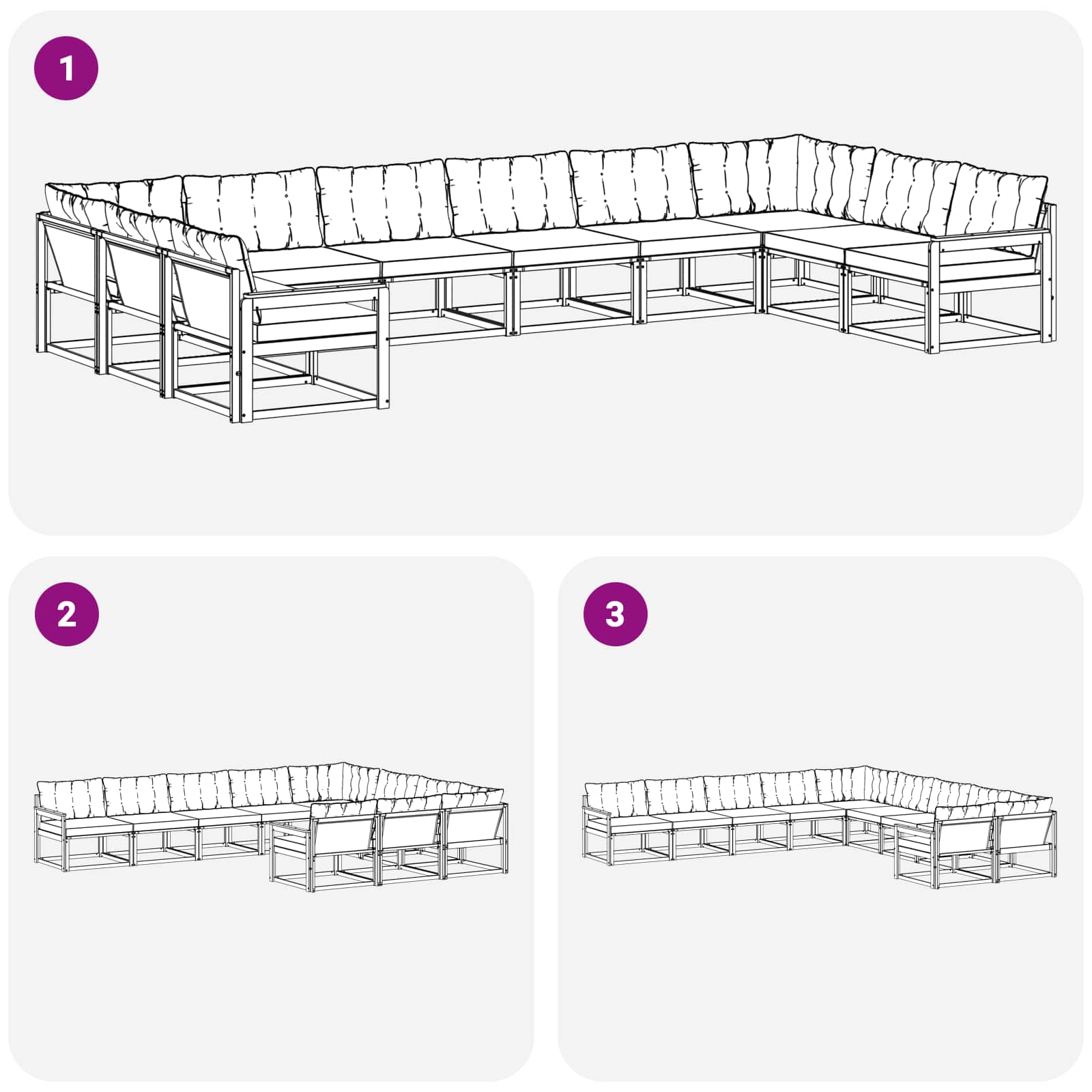 • Praktické funkce: Tkanina odolná vůči vyblednutí zajišťuje, že pohovka vydrží roky, navíc snadná údržba a povrch, který se snadno čistí, dělají vše jednodušší. Silně polstrované polštáře lákají k bezstarostnému odpočinku. Ergonomické opěradlo zvyšuje komfort a design opěrek se hodí pro všechna uspořádání, ať už máte velký nebo menší venkovní prostor.