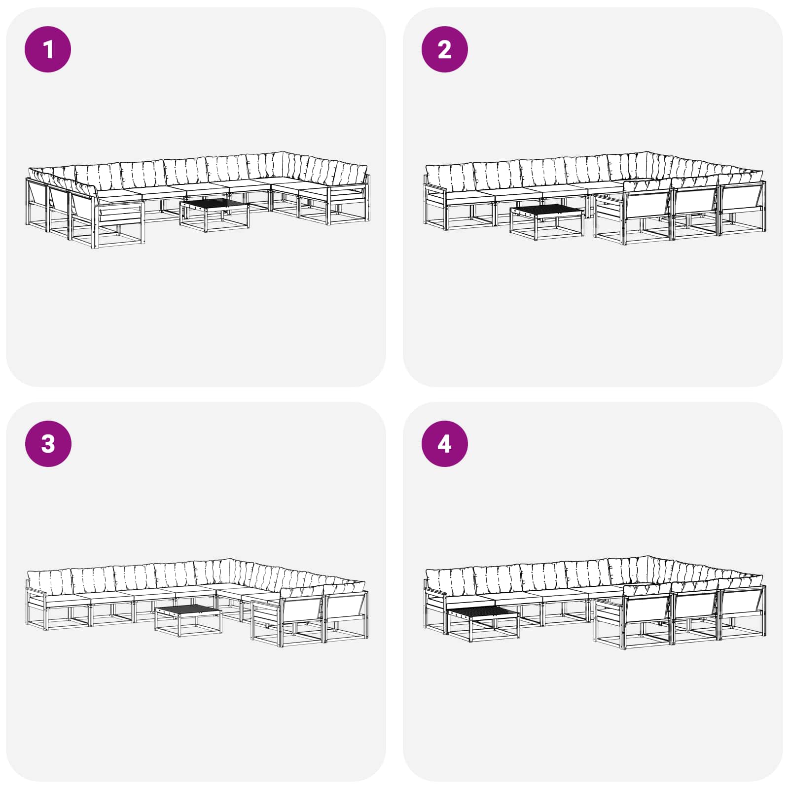 • Univerzální využití: Tento univerzální venkovní set je skvělý na zahrady a terasy, snadno se přizpůsobí jakémukoliv příležitostnému stolování nebo párty. Jeho atraktivní vzhled se hodí do různých venkovních prostředí, stává se přirozeným středobodem kdekoliv. Jeho modulární design umožňuje přizpůsobení, takže splní různé potřeby a dodá sofistikovanost.