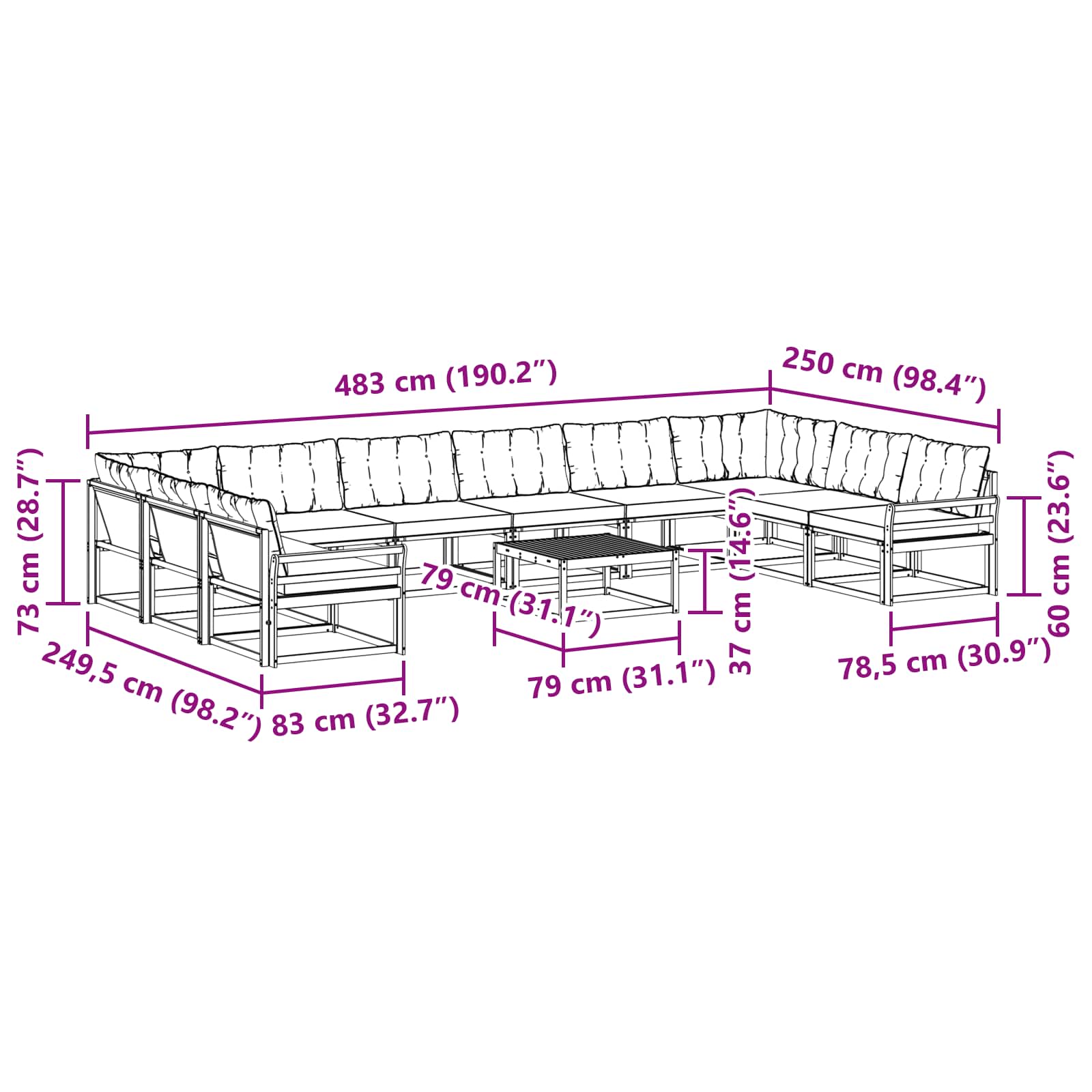 • 12 x Zádový polštář: 80 x 43 x 10 cm (D x Š x V)