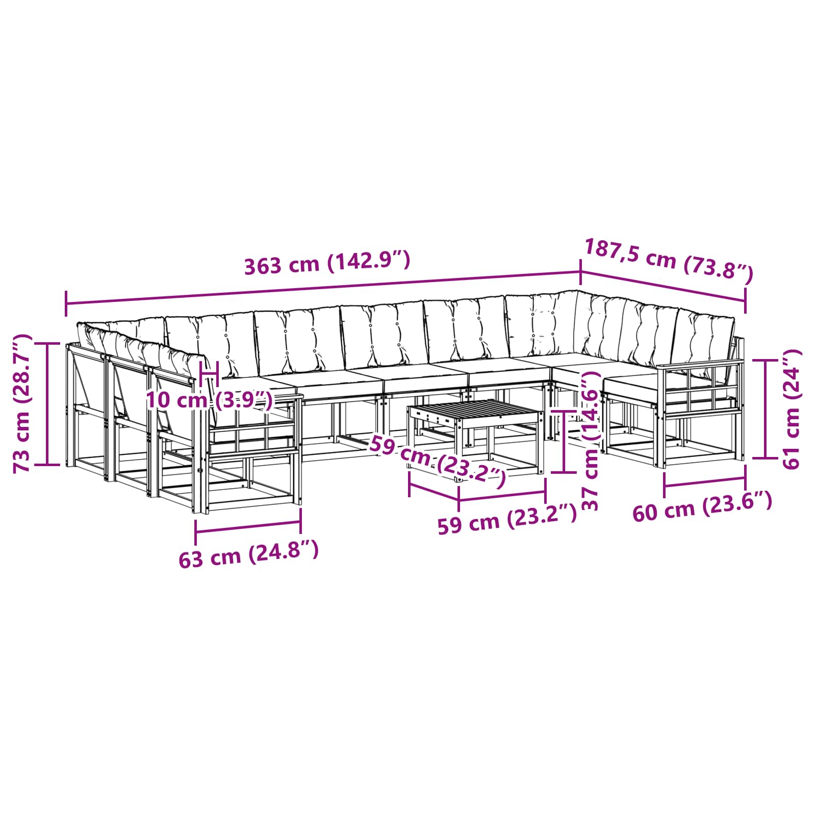 Venkovní pohovková souprava 11 pcs Přirozená a černá