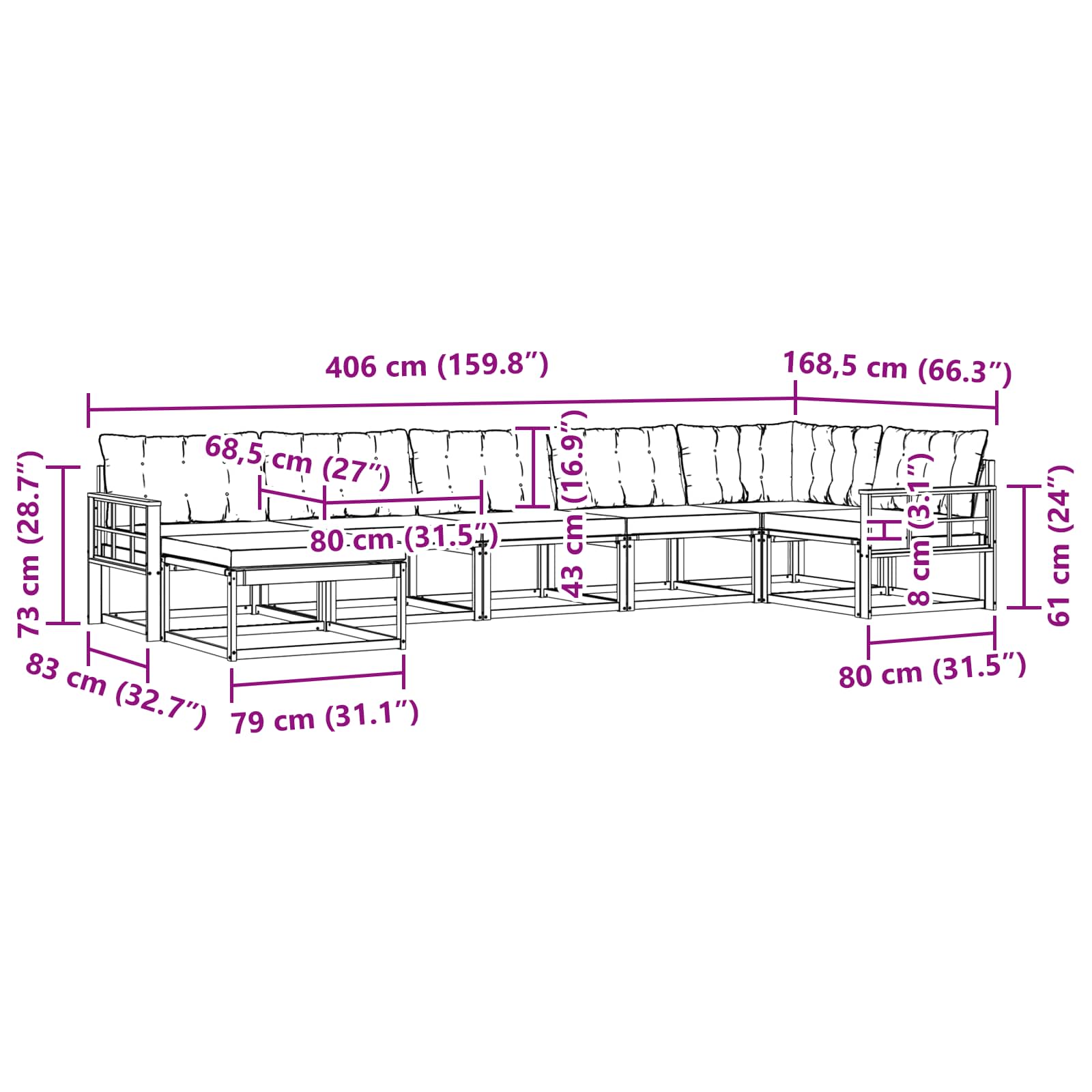 Tahle venkovní souprava pohovek je moderní skvost navržený k přetvoření tvojí zahrady nebo terasy na stylový úkryt. Nese eleganci a sofistikovanost, snadno se podřizuje současným venkovním stylům, láká k relaxaci a pohodě.