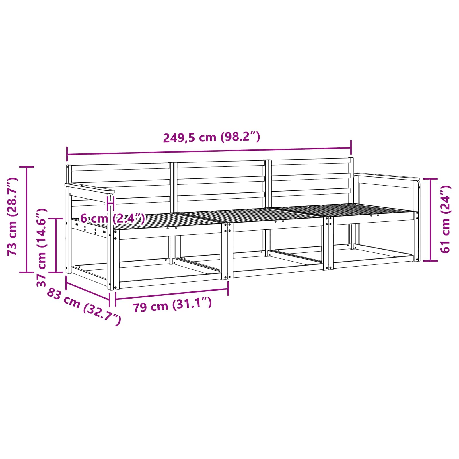 • Opěradlo s lamelovým designem: Každý díl pohovky má opěradlo s lamelovým designem pro maximální pohodlí a podporu. Umožňuje dobré proudění vzduchu, což činí dlouhé sezení příjemným, obzvlášť v teplých dnech a dodává to styl do vašich venkovních prostor.