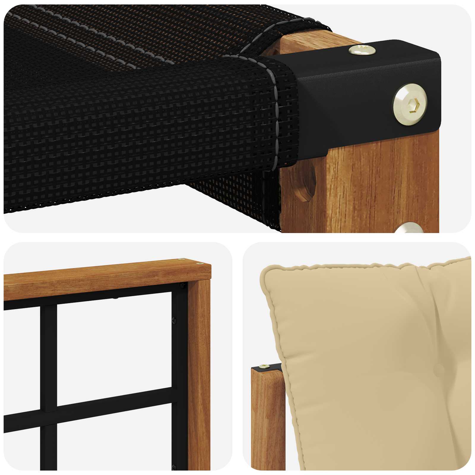 • Odolné masivní akáciové dřevo: Tento venkovní nábytek je z kvalitního akáciového dřeva, které je známé svou robustností a odolností proti vlivům počasí. Konstrukce je pevná a zaručuje stabilitu, zatímco teplé přírodní tóny obohacují vaši zahradu nebo terasu.