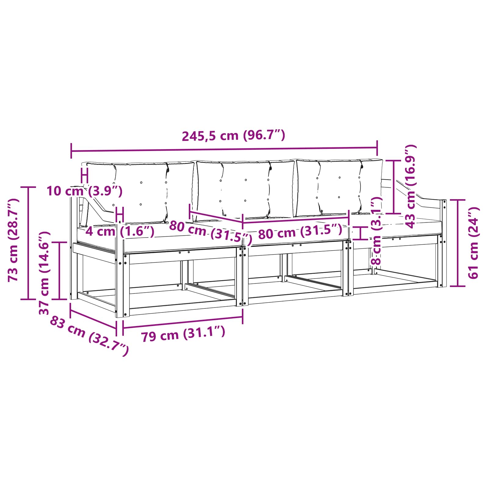 • 3 x Střední pohovka: 79 x 83 x 73 cm (D x Š x V)