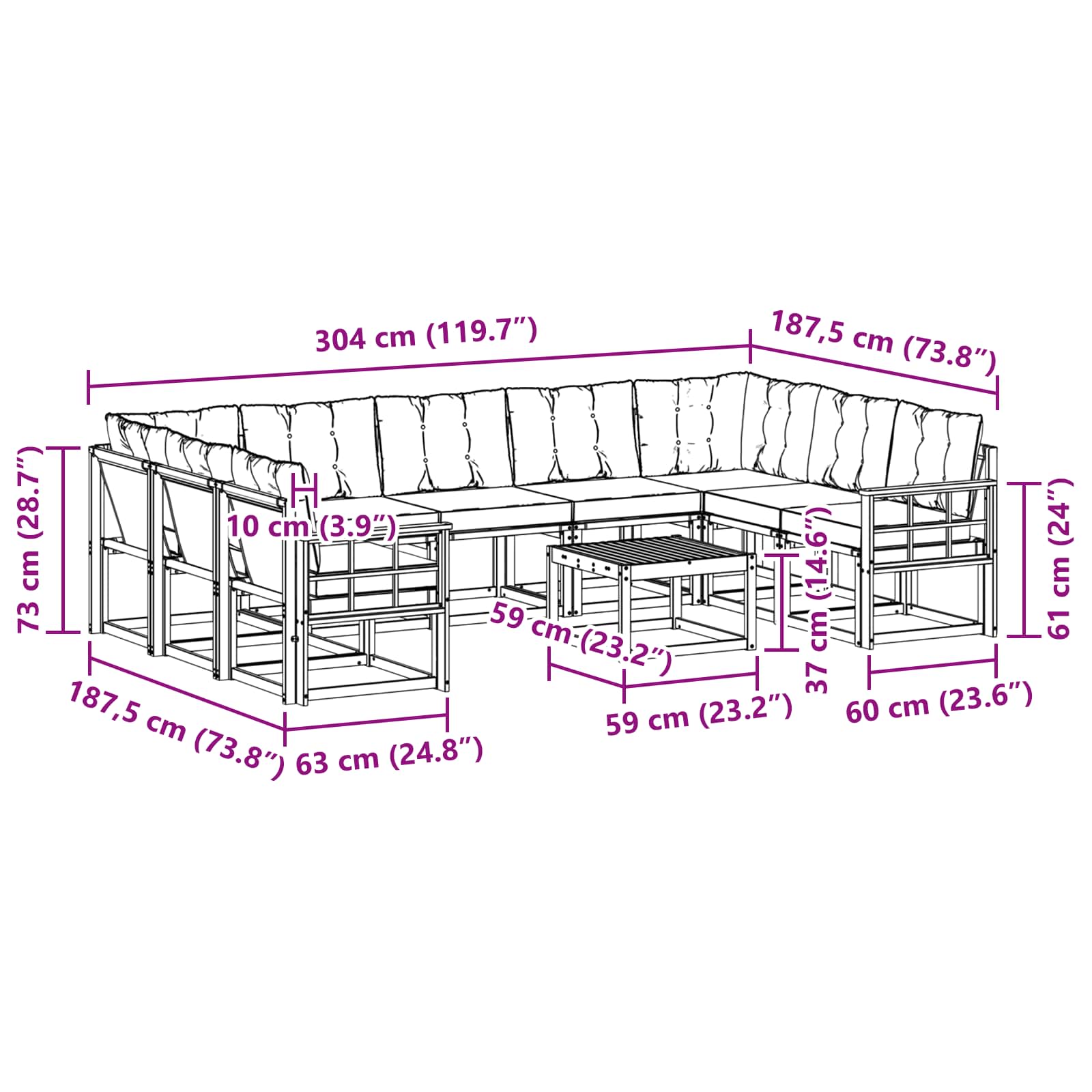 Odolný venkovní sofa set je jedinečným kouskem pro každou zahradu nebo terasu, který kombinuje estetično a funkčnost. Je navržen tak, aby se skvěle hodil do vašeho venkovního prostoru a stal se středem pozornosti na každém setkání. Jeho krásná přírodní textura dřeva a bohatý hnědý povrch mu dodávají elegantní styl, díky čemuž z každého místa udělá příjemný venkovní úkryt. Ať už máte hosty nebo si užíváte chvilku klidu, tento sofa set přináší pohodlí a styl pro každou příležitost.