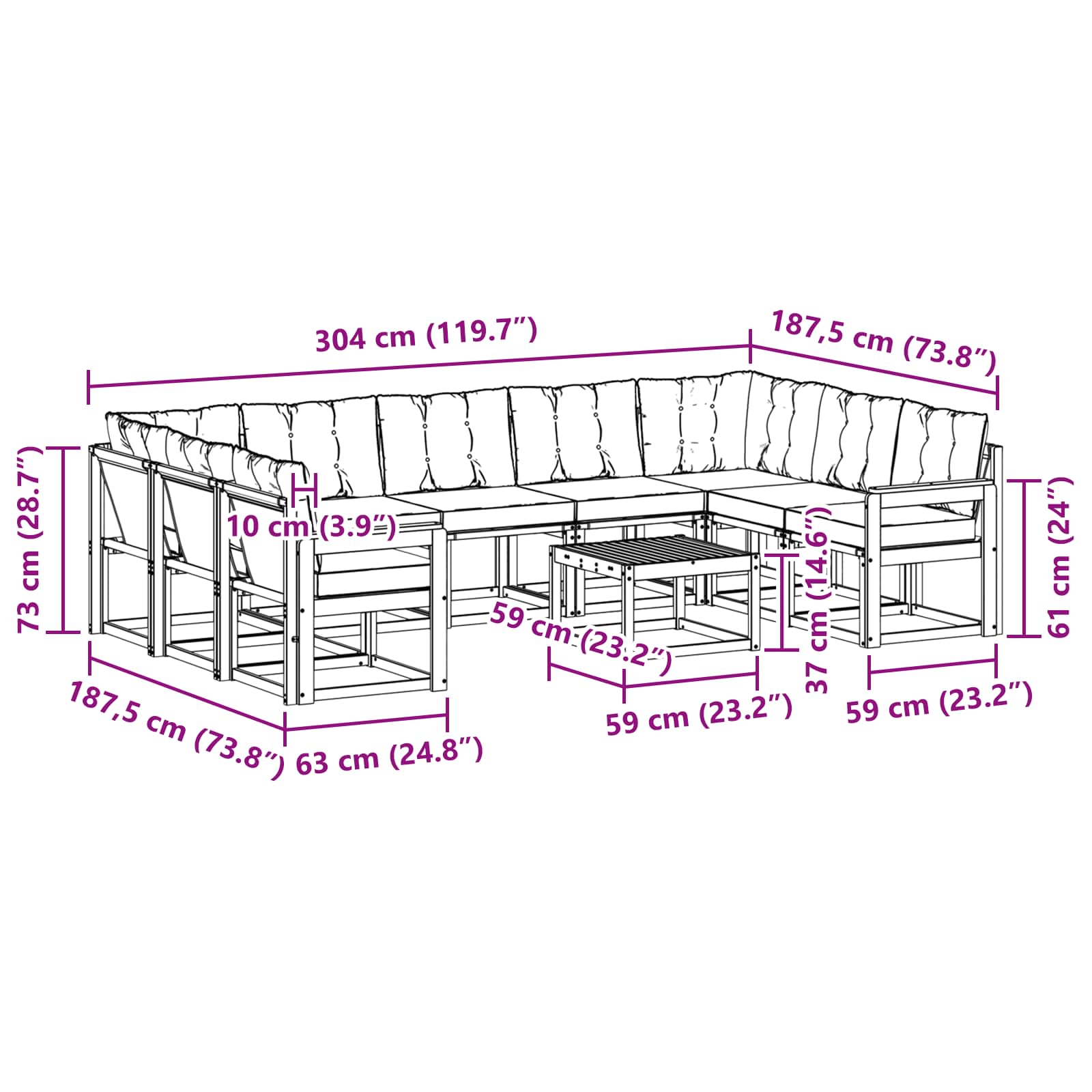 Odolný venkovní sofa set je jedinečným kouskem pro každou zahradu nebo terasu, který kombinuje estetično a funkčnost. Je navržen tak, aby se skvěle hodil do vašeho venkovního prostoru a stal se středem pozornosti na každém setkání. Jeho krásná přírodní textura dřeva a bohatý hnědý povrch mu dodávají elegantní styl, díky čemuž z každého místa udělá příjemný venkovní úkryt. Ať už máte hosty nebo si užíváte chvilku klidu, tento sofa set přináší pohodlí a styl pro každou příležitost.